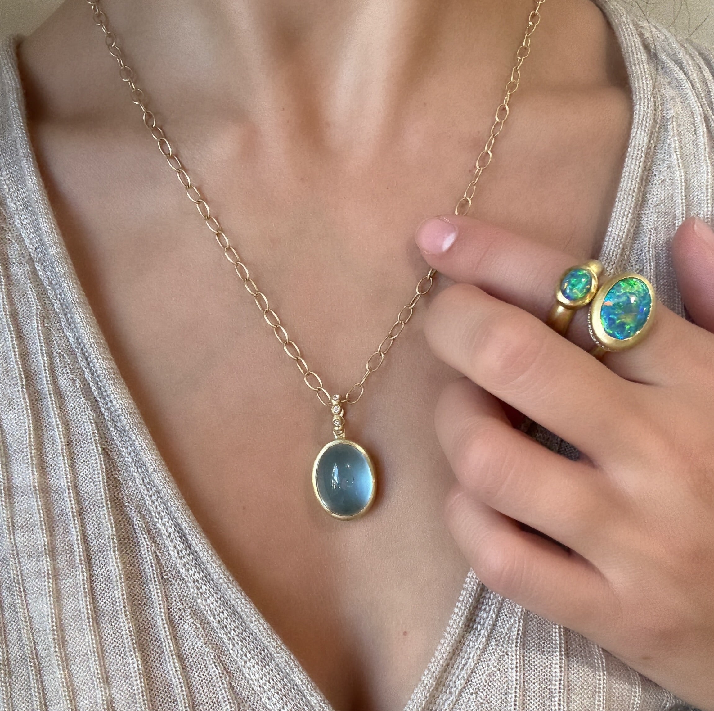 Opal, known for its mesmerizing play-of-color, has been likened to fireworks, galaxies, and volcanoes. Its dramatic, shifting hues make it ideal for those who appreciate distinctive jewelry. Whether in rings, necklaces, or earrings, opal brings a luminous and one-of-a-kind appeal to any piece.