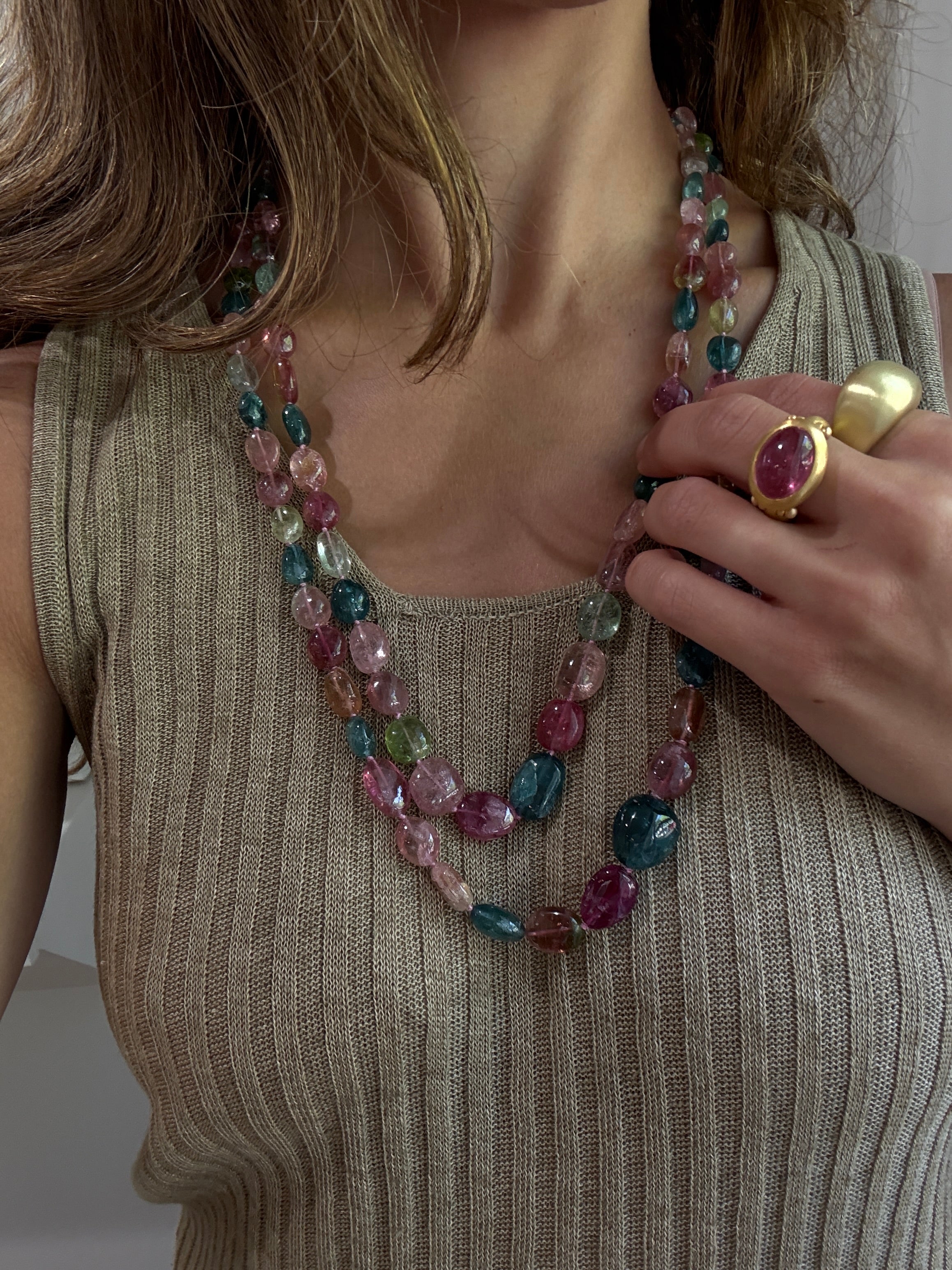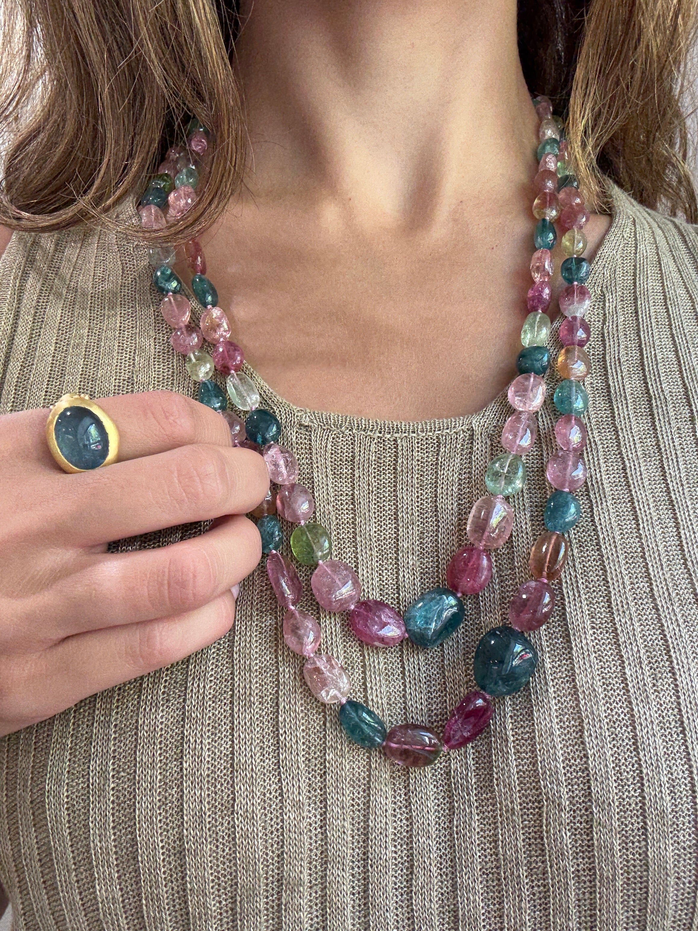 18 Karat Gold Multicolored Tourmaline Nugget Necklace