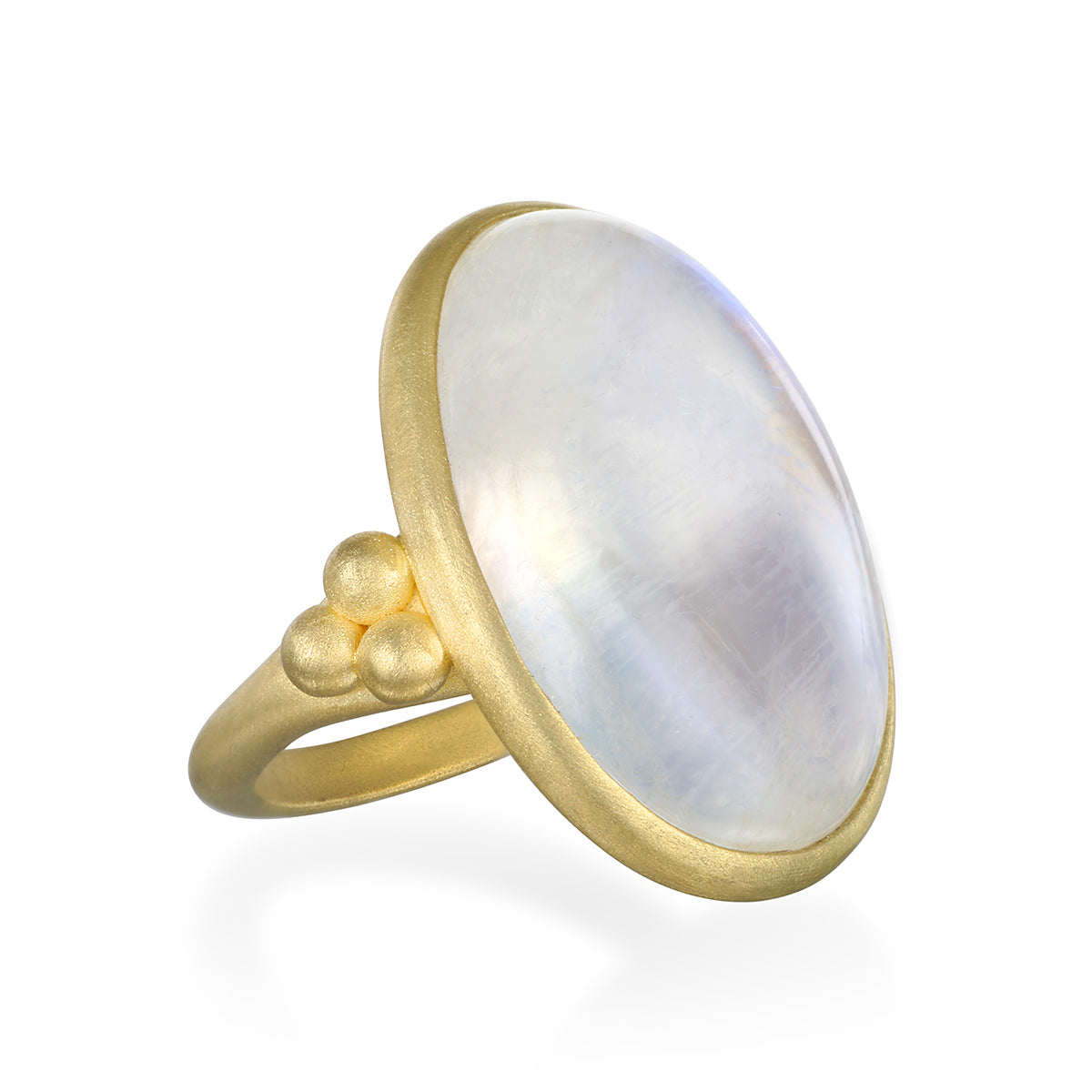 18 Karat Gold Rainbow Moonstone Bezel Ring
