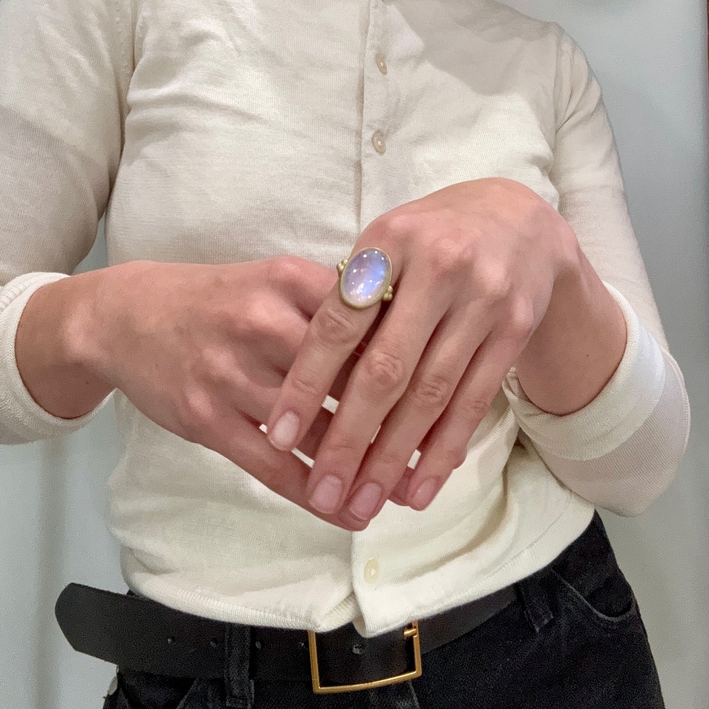 18k Gold Rainbow Moonstone Bezel Ring
