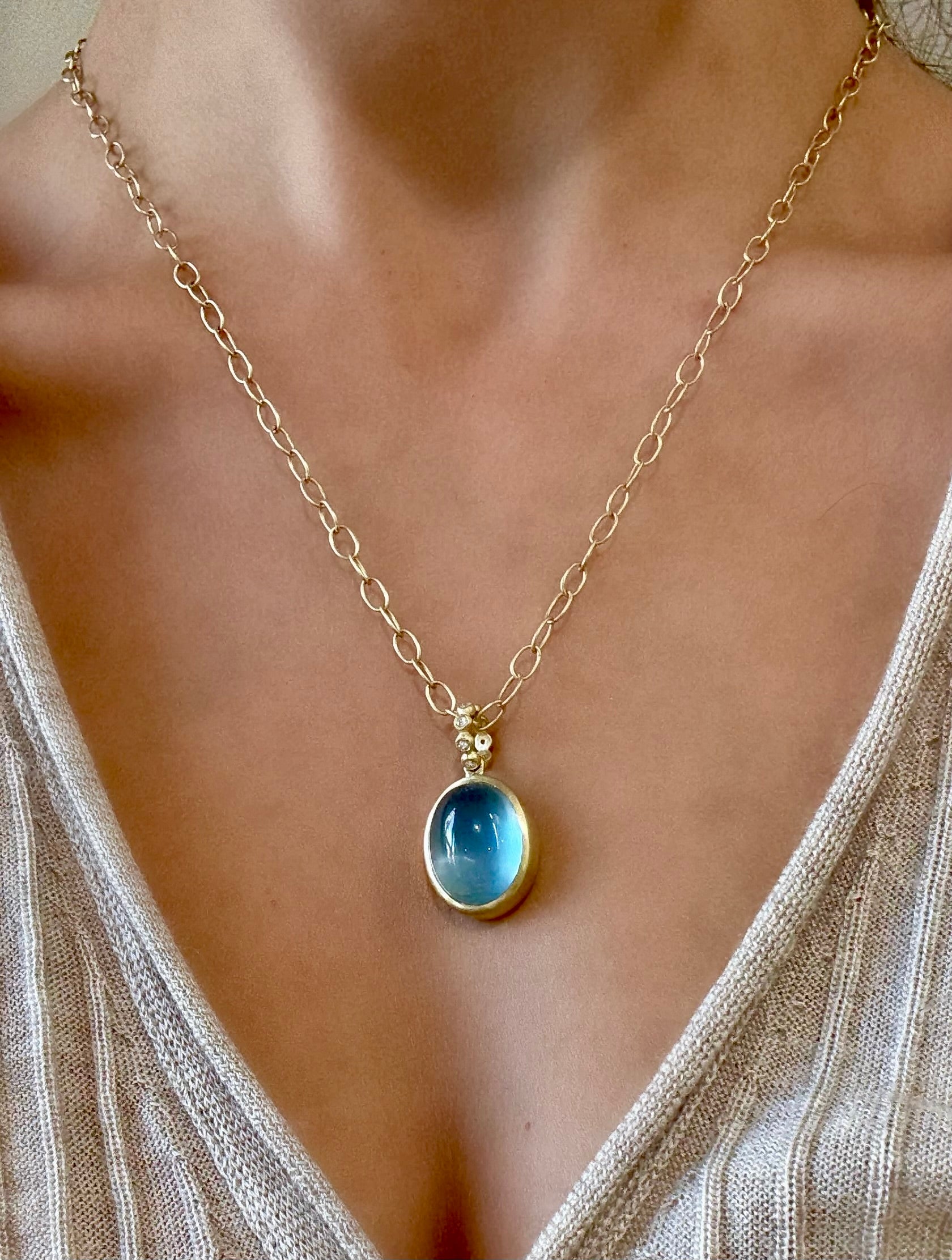 Aquamarine 18 Karat Gold Pendant With Granulation Bail