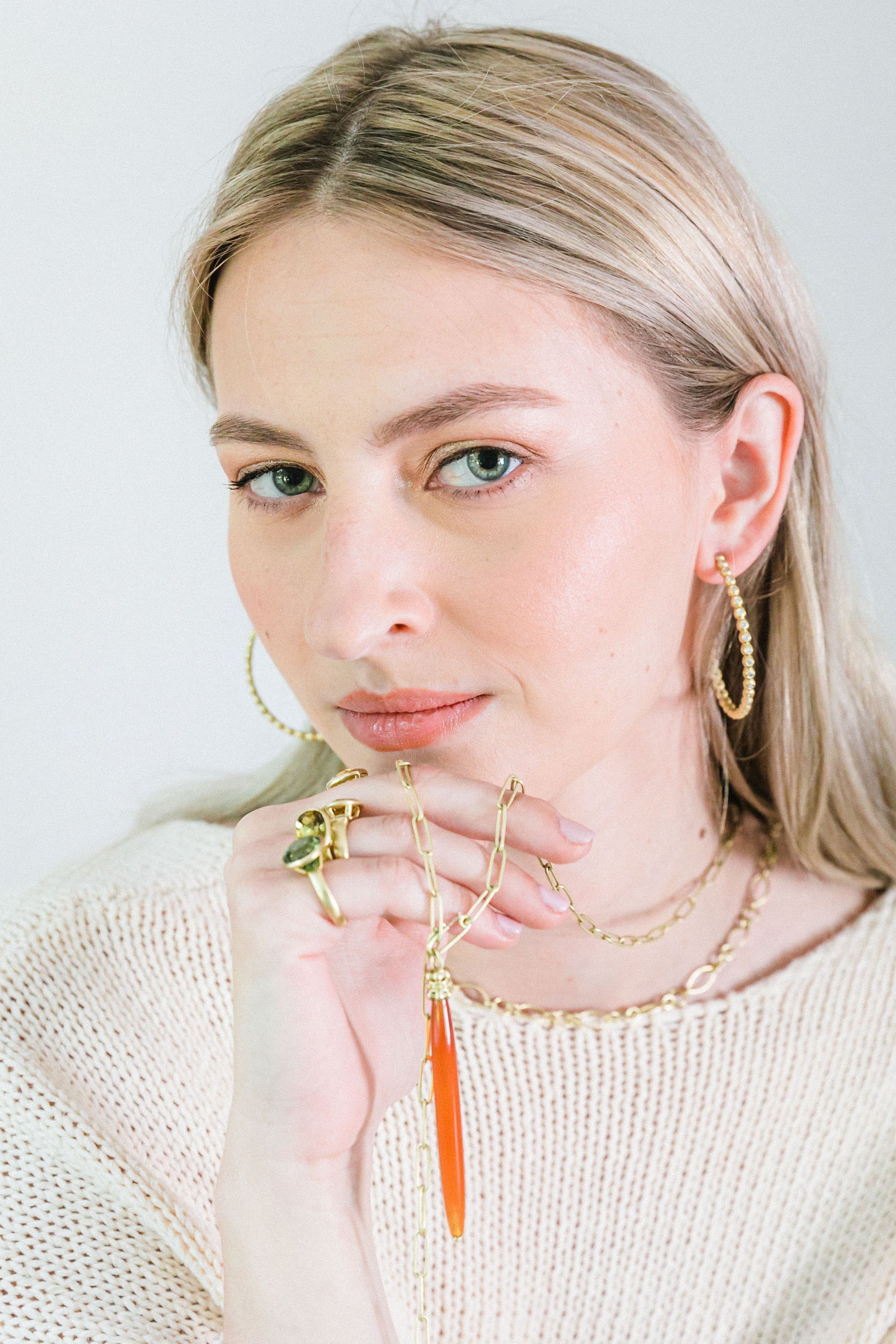 18k Gold Carnelian Tapered Bar Pendant with Rondel Cap