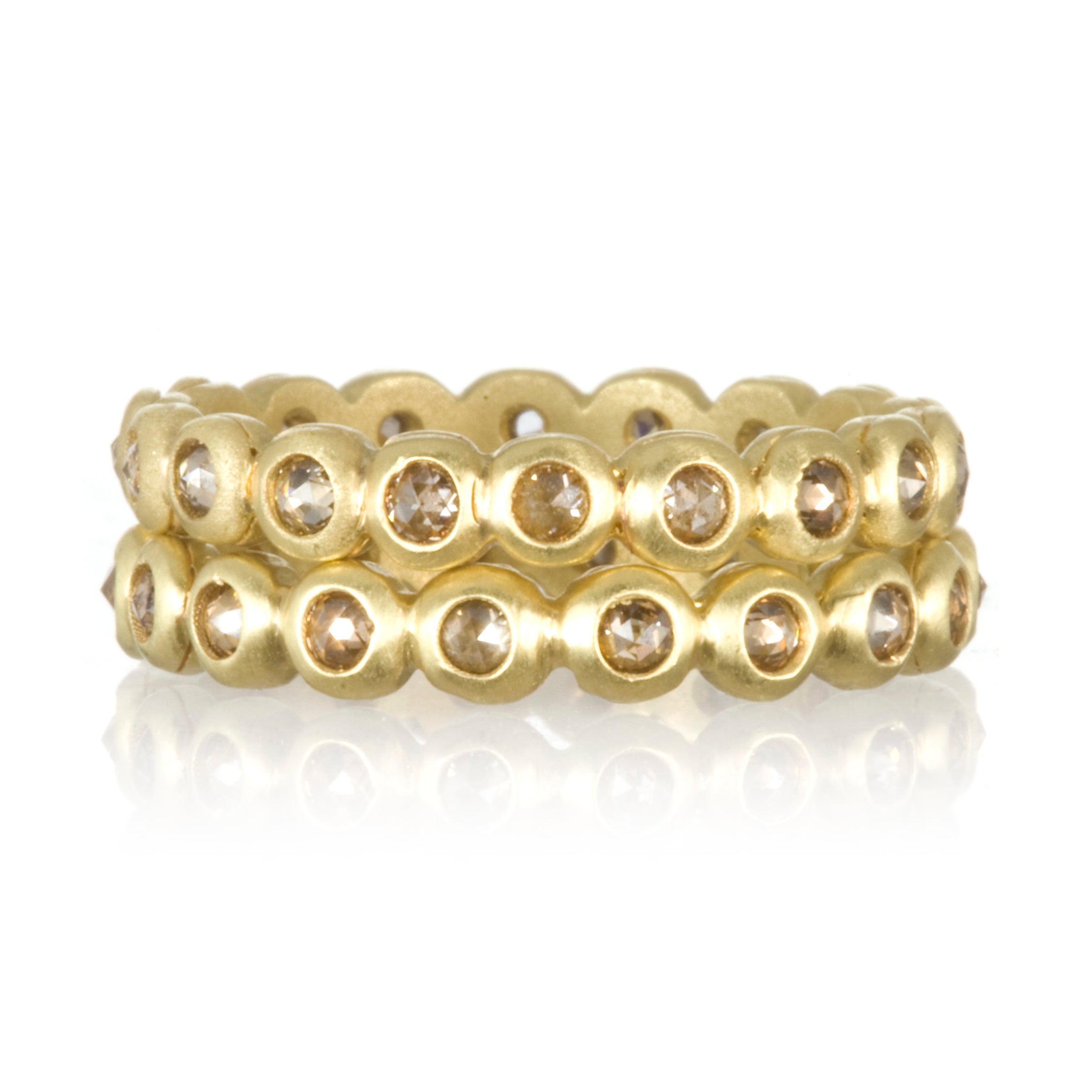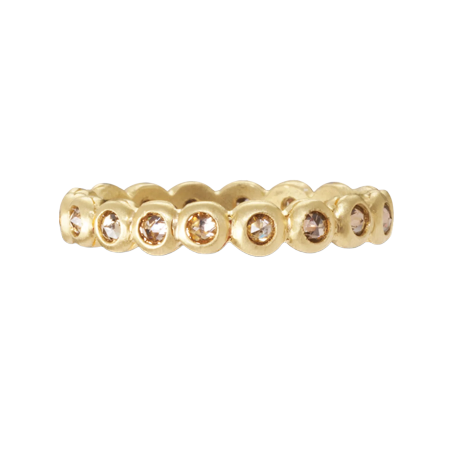 18k Gold Champagne Rose Cut Diamond Eternity Band Ring