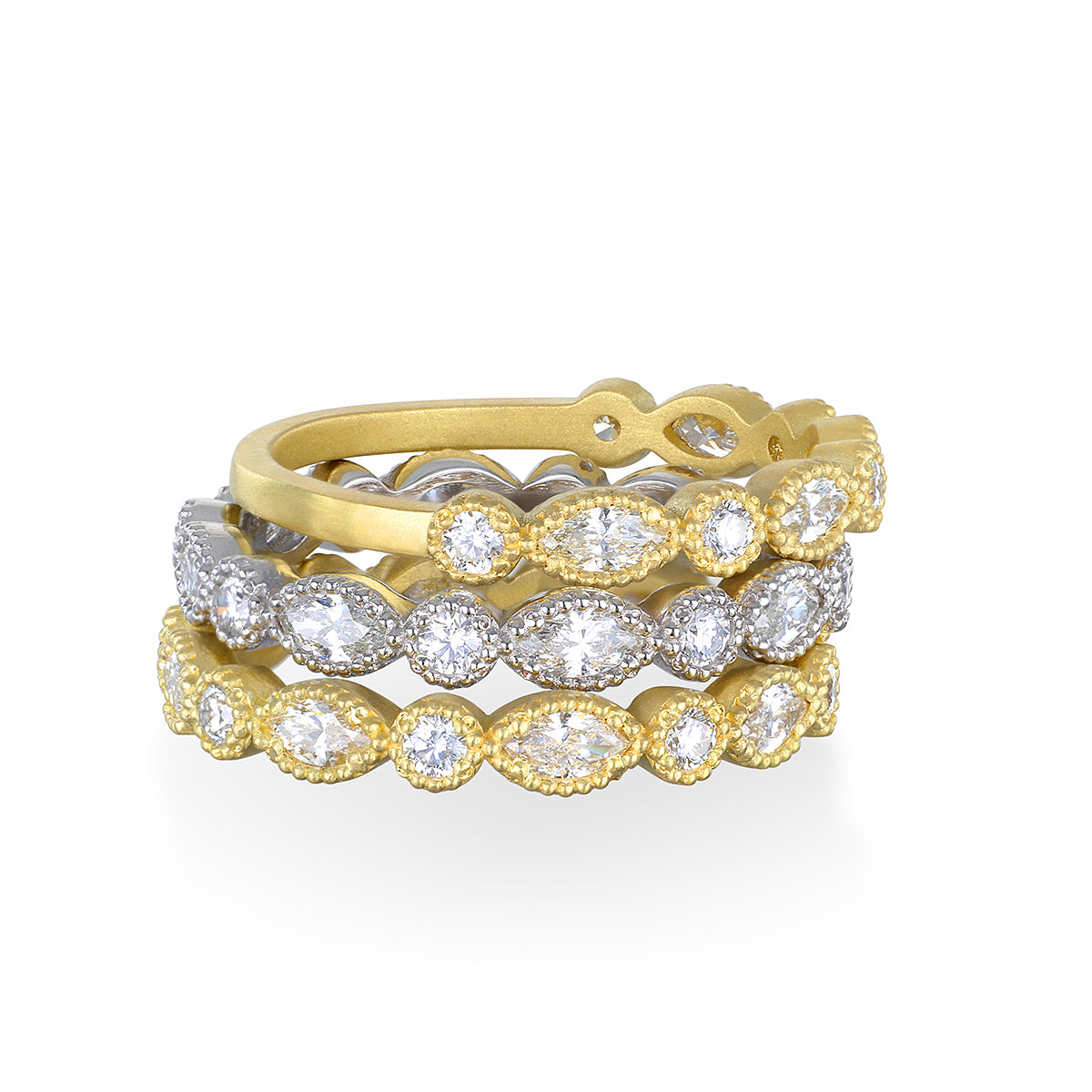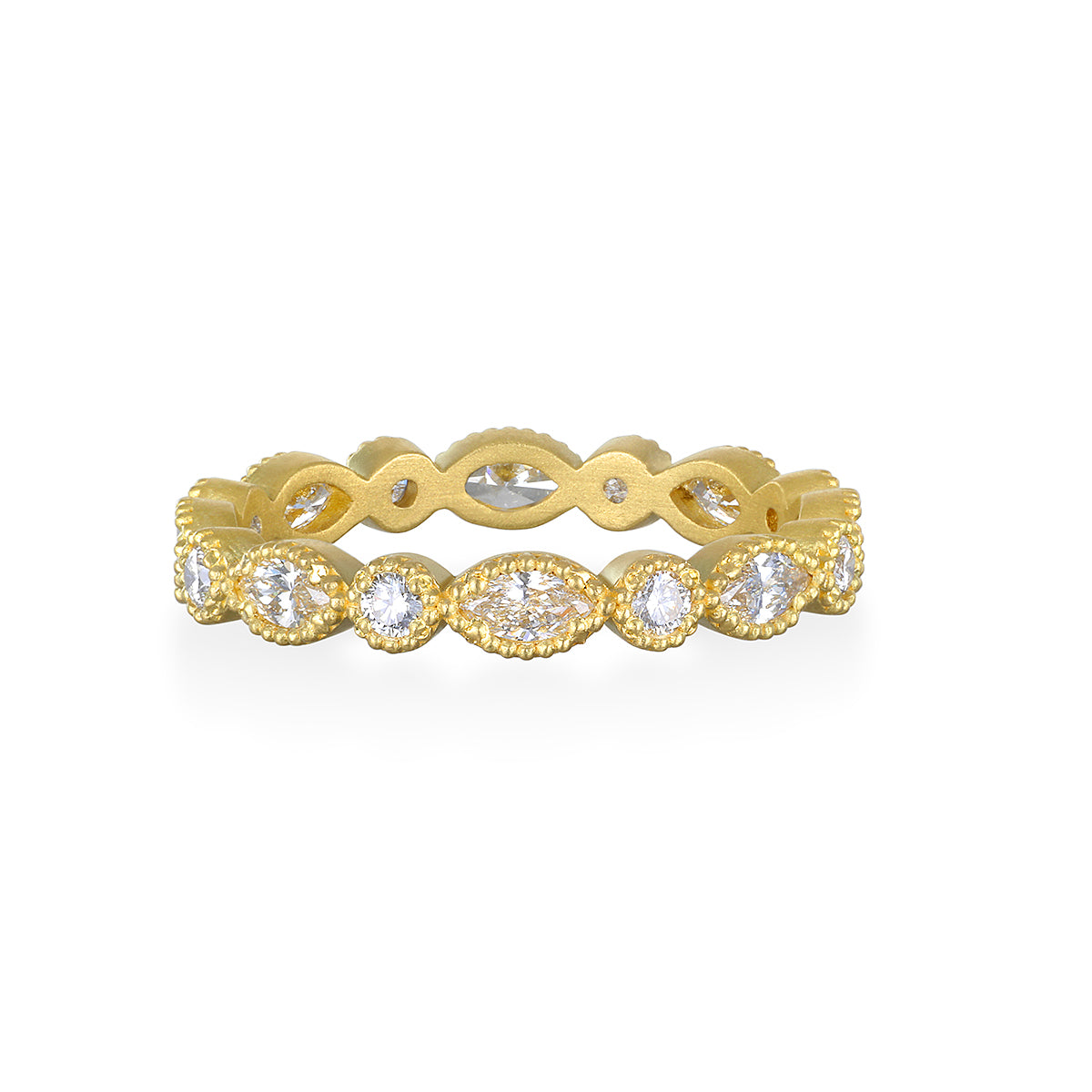18k Gold Round-Marquise Diamond Eternity Band with Milgrain Detailing