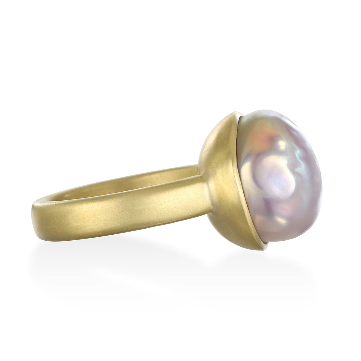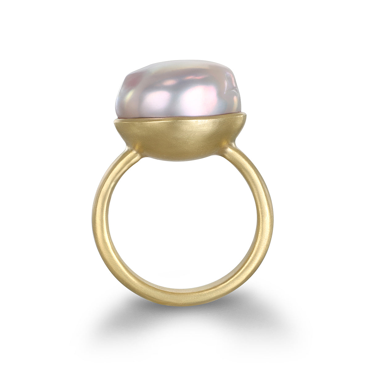 18 Karat Gold Pink Baroque Freshwater Pearl Ring