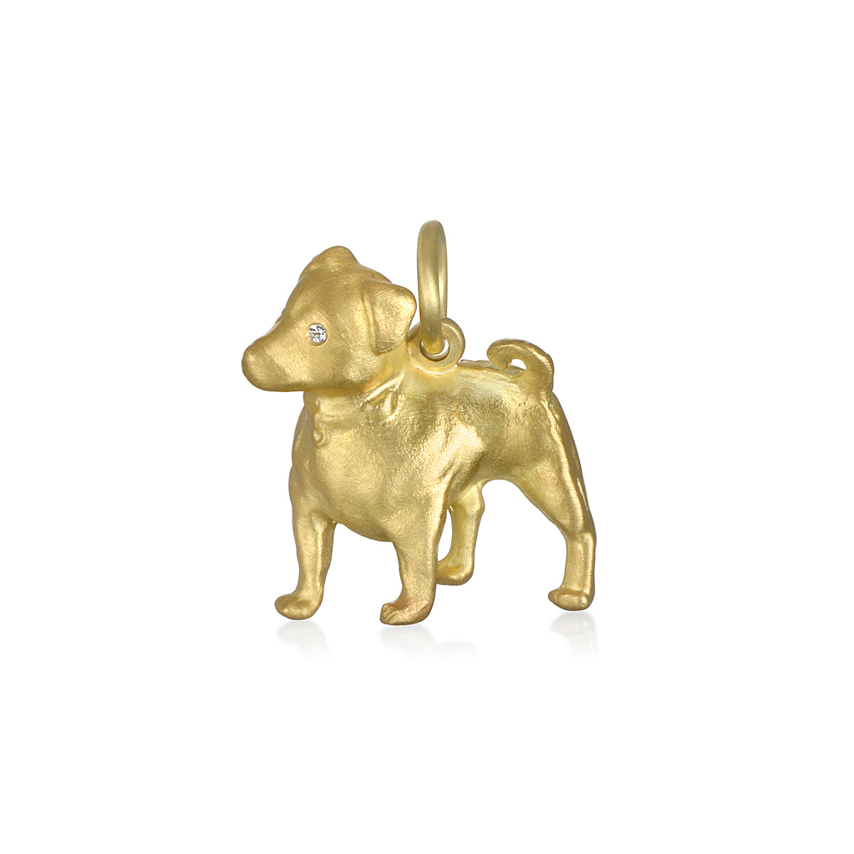 18k Gold Jack Russell Terrier Charm with Diamond Eyes
