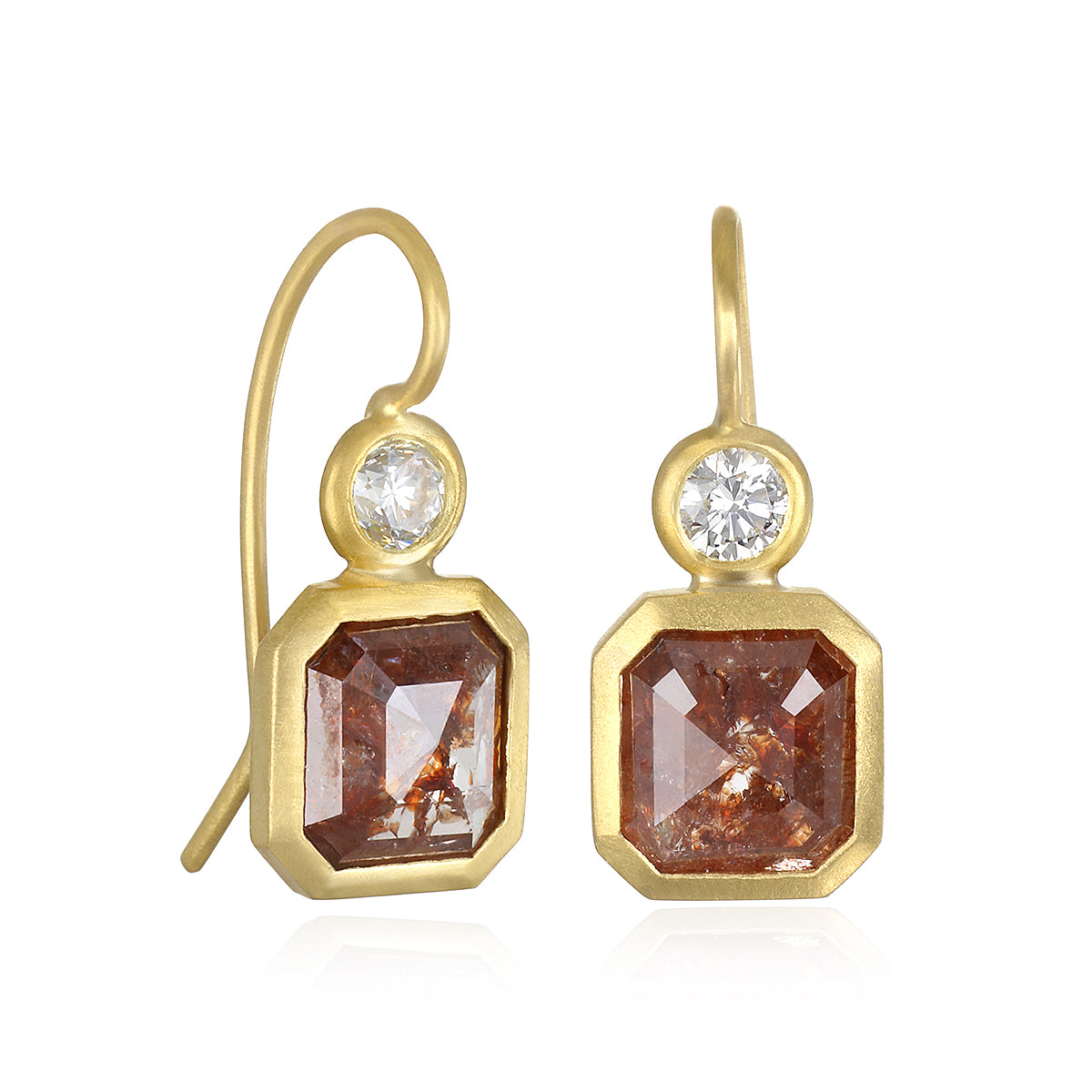18 Karat Gold Handmade Blush-Colored Milky and White Diamond Hinged Earrings