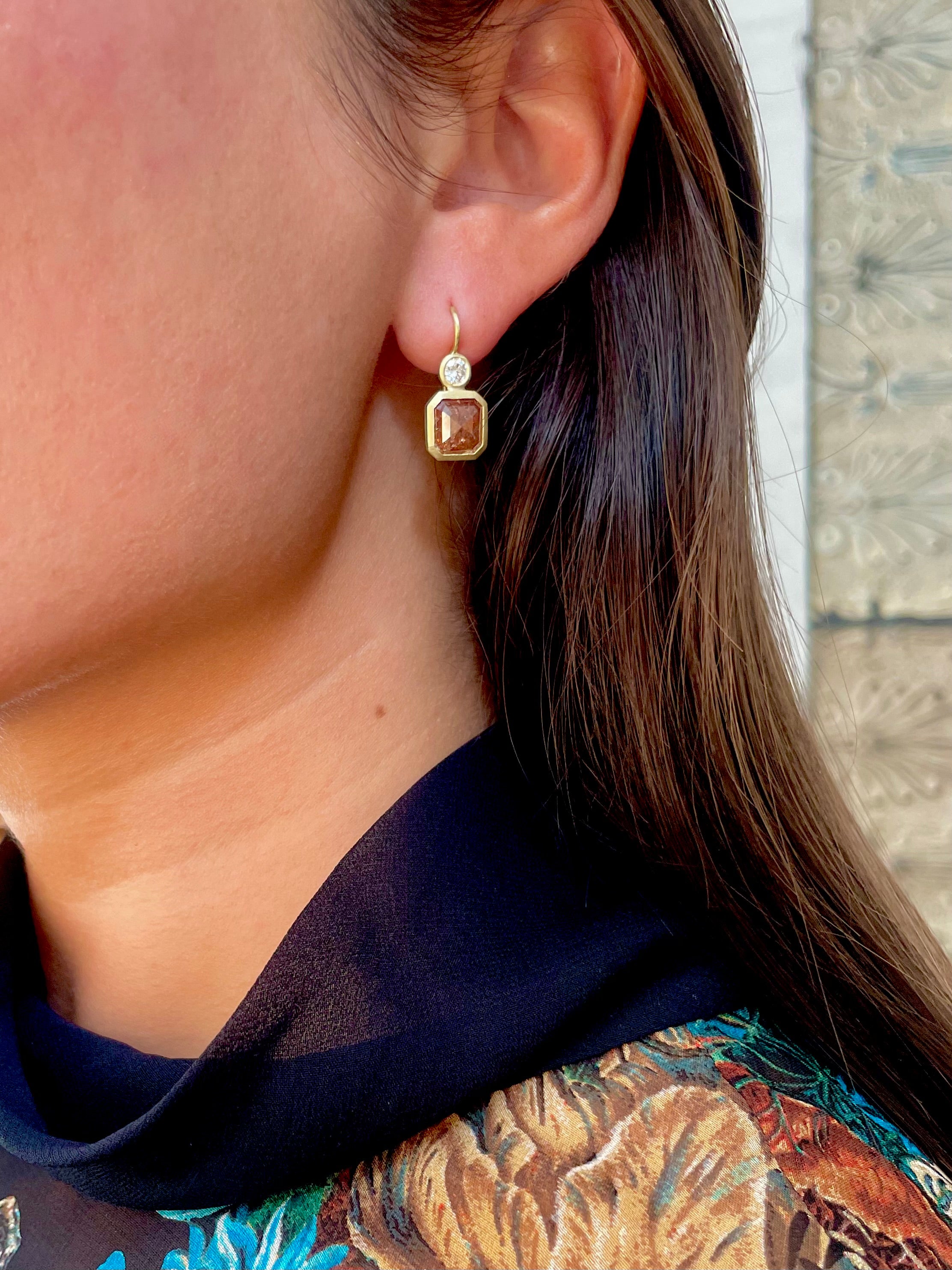 18k Gold Handmade Blush-Colored Milky and White Diamond Hinged Earrings