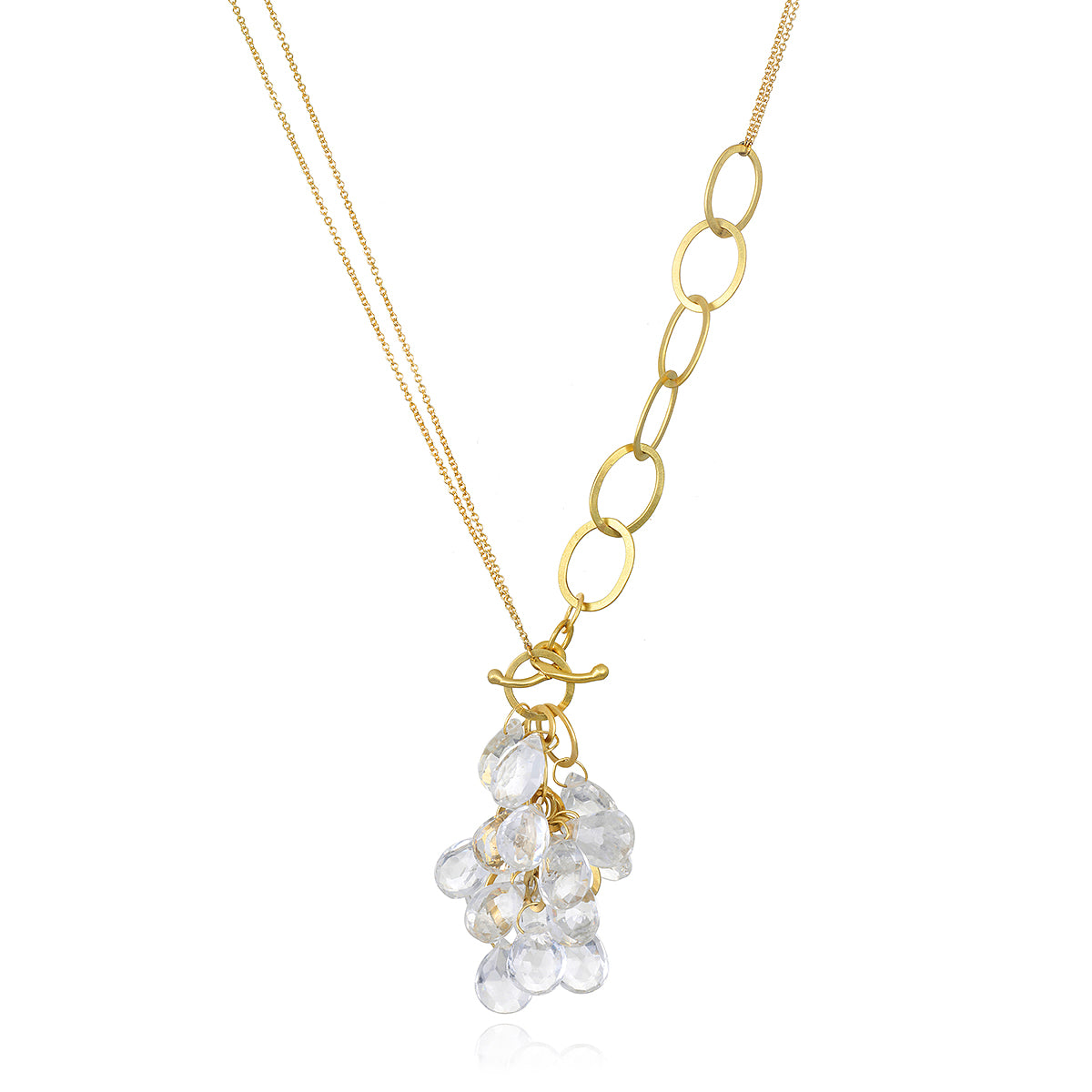 18k Gold Rock Crystal Quartz Link Necklace with Toggle Closure