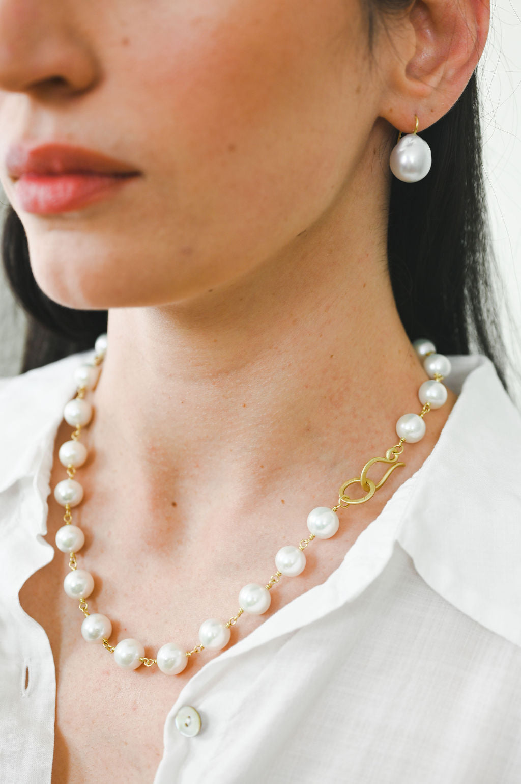 18k Gold Hand-Wrapped Freshwater Pearl Necklace with Handmade Clasp