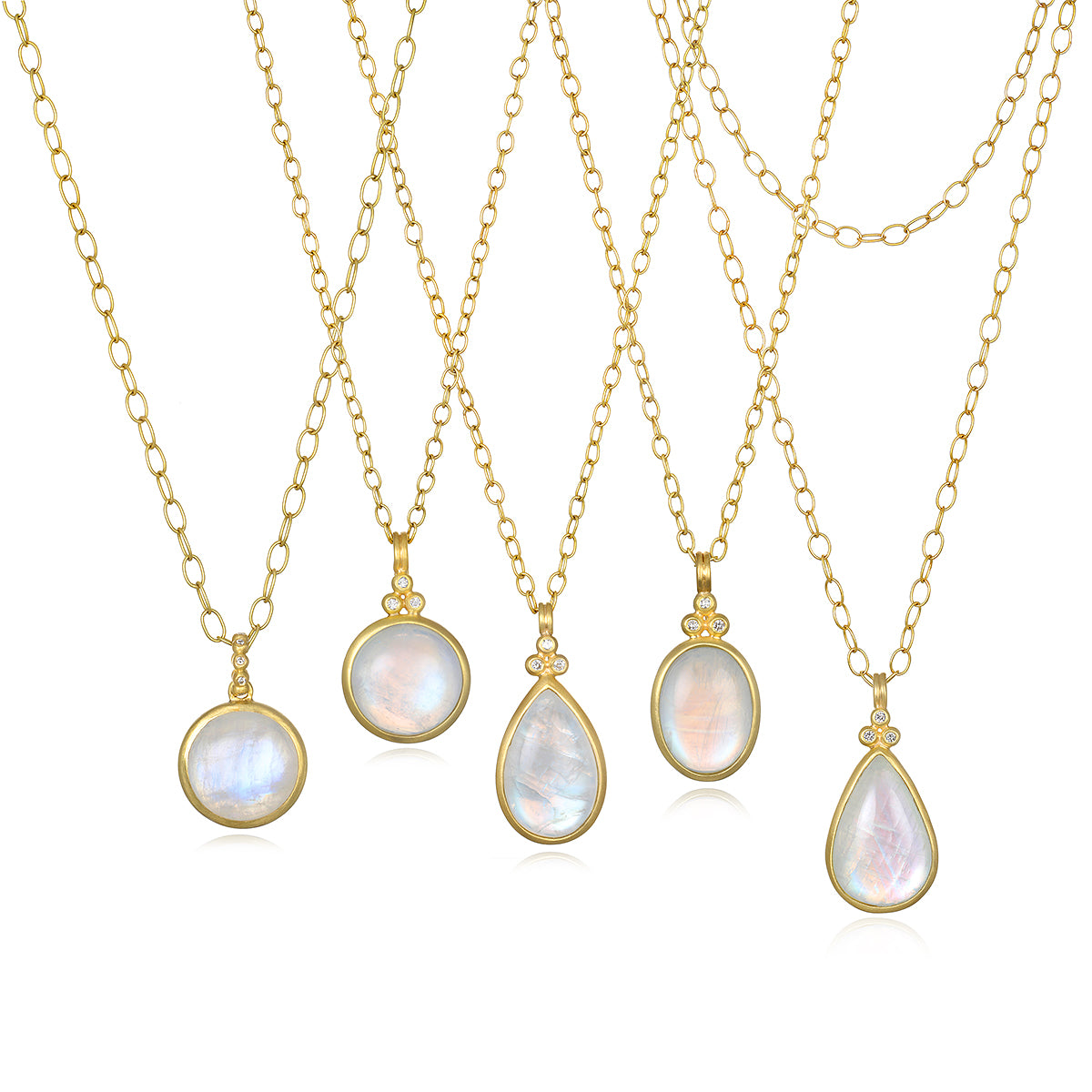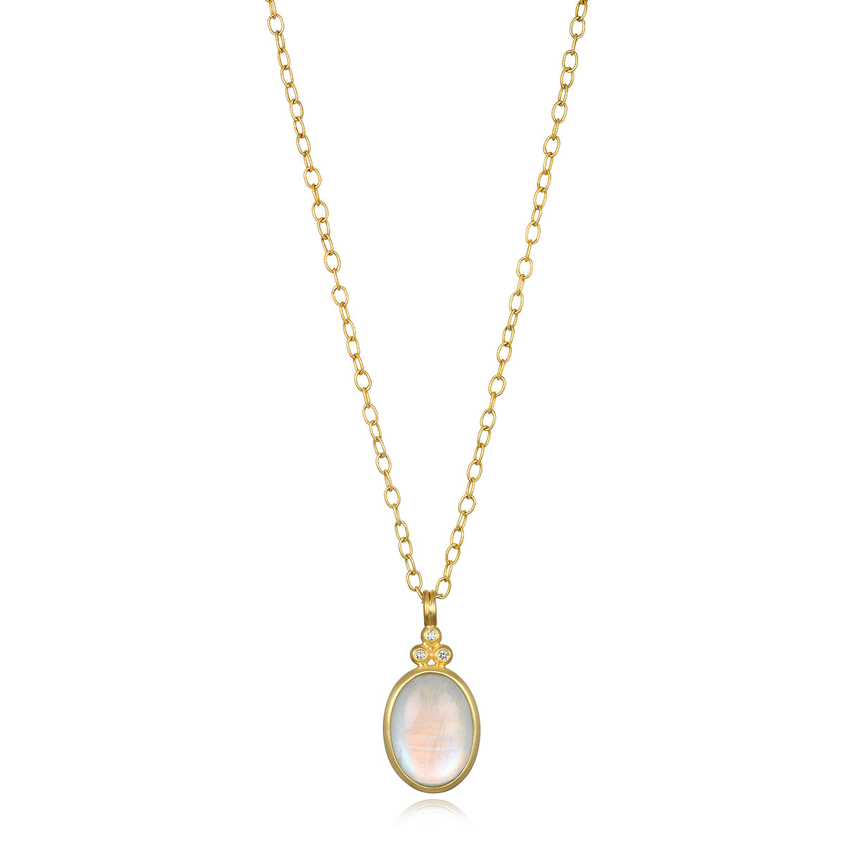 18k gold oval moonstone pendant with triple diamond granulation beads