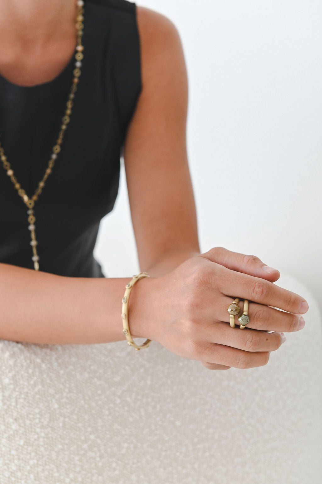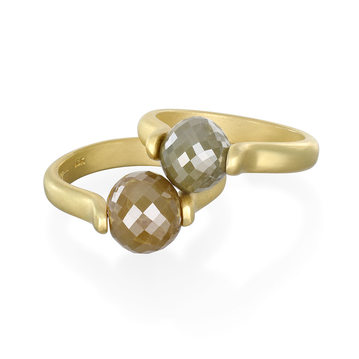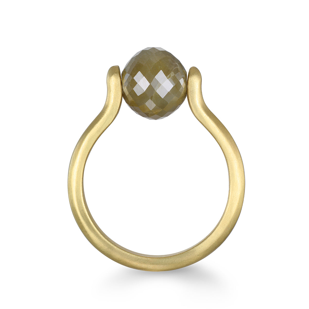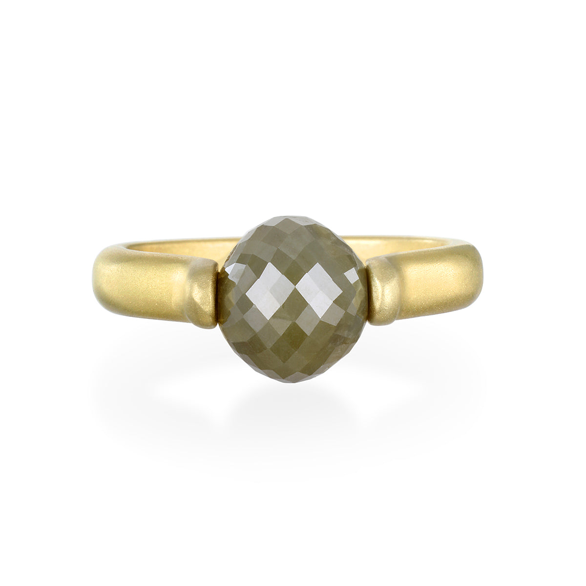 18 Karat Gold Faceted Milky Diamond Bead Ring