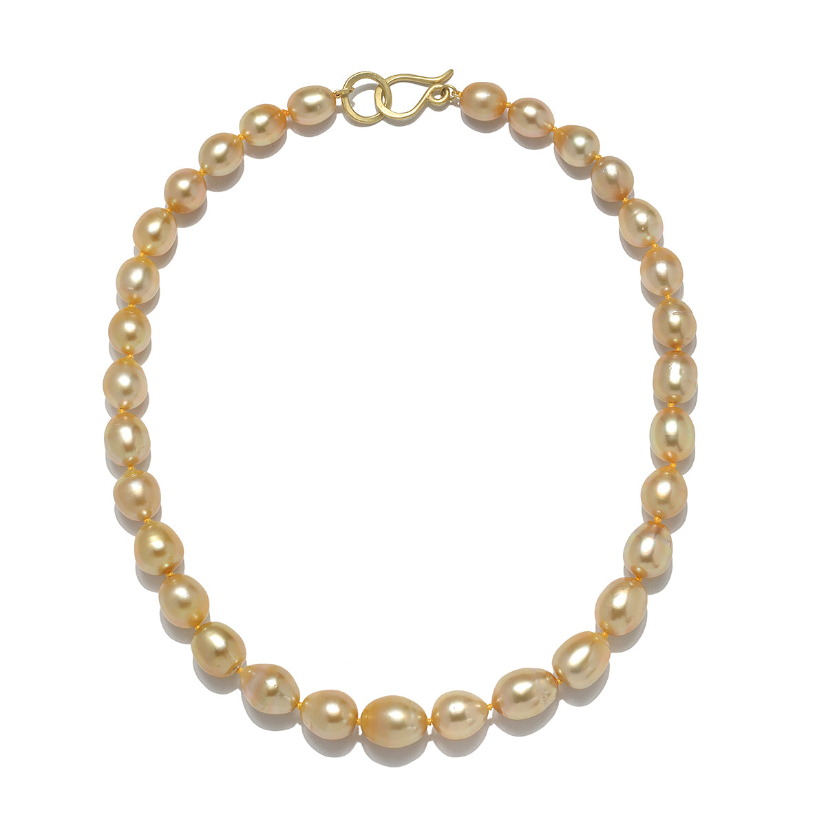 18k old Golden South Sea Pearl Necklace with Handmade Clasp