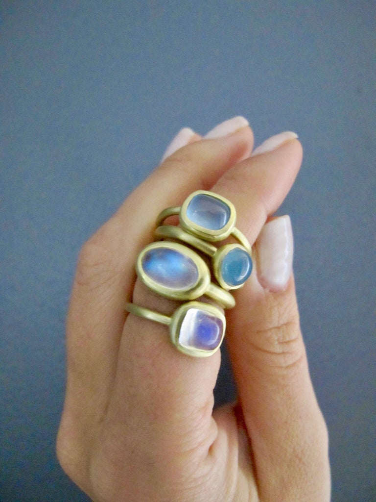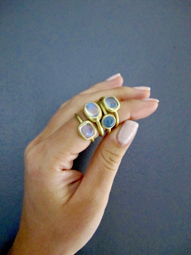 18k gold Ceylon Moonstone cushion cut bezel ring