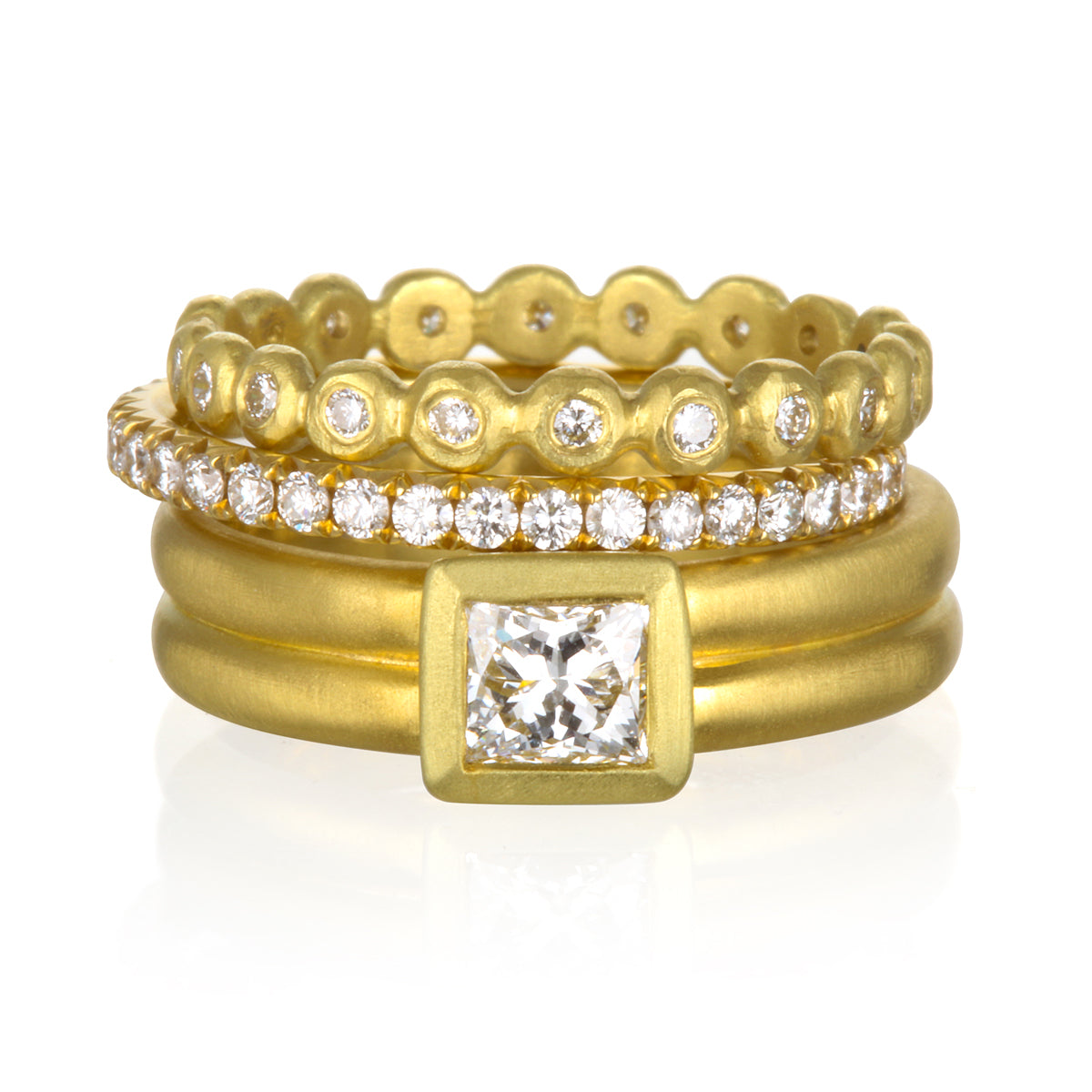 18 Karat Gold Princess Cut Diamond Double Band Ring