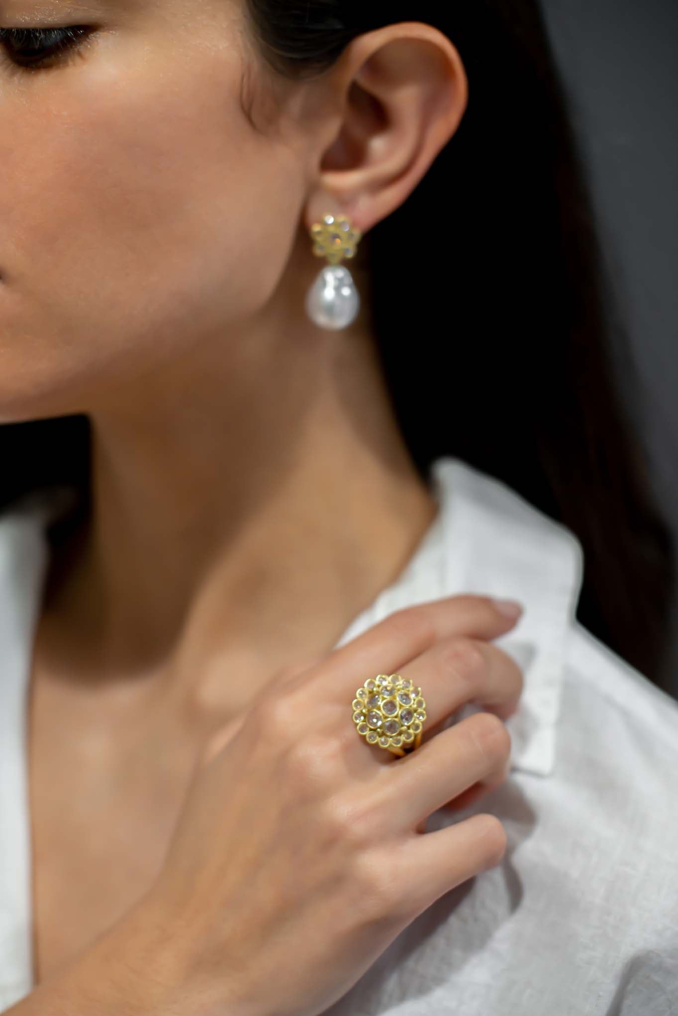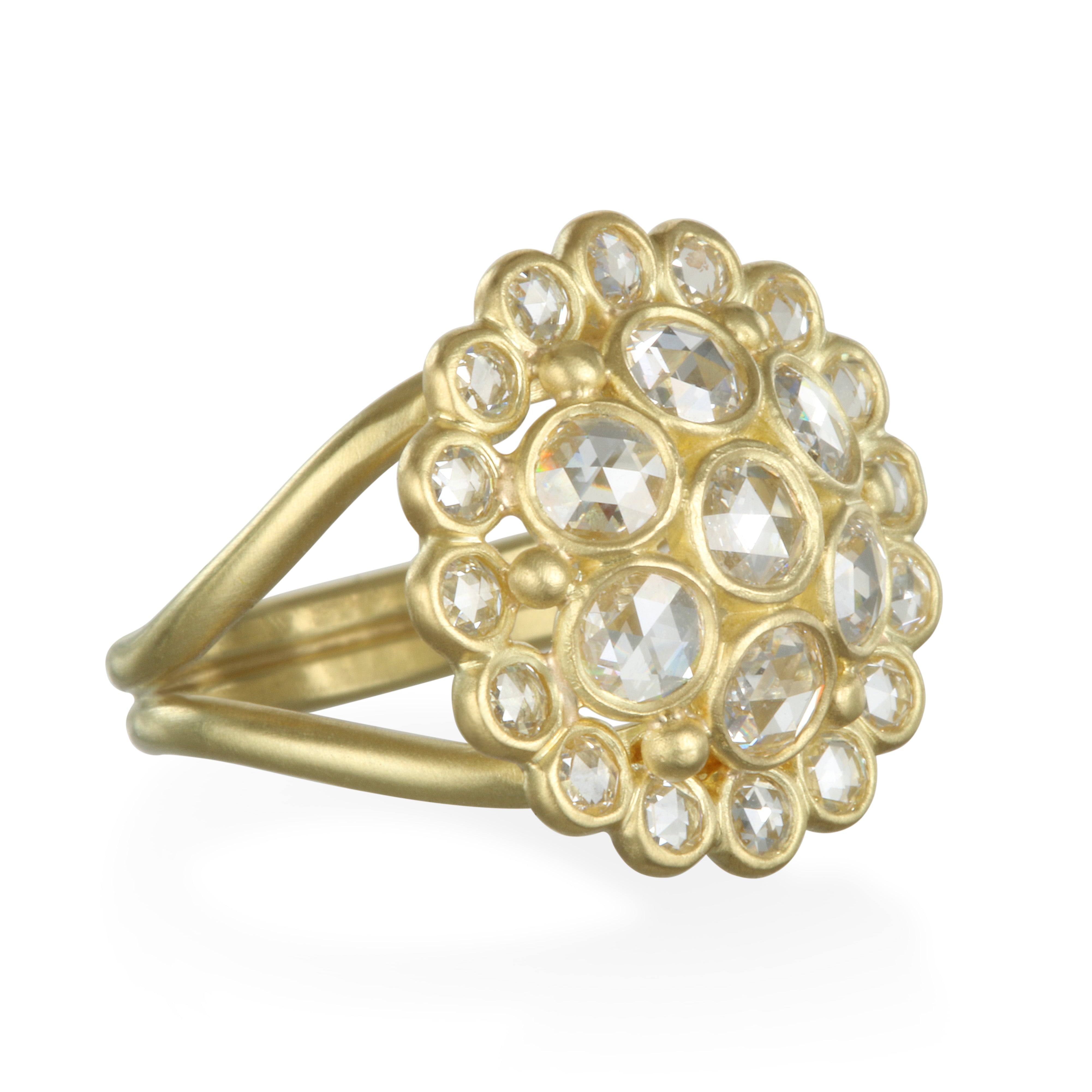 18 Karat Gold Rose Cut Diamond Dome Ring
