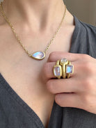 18k Gold Blue Moonstone Cushion Bezel Ring