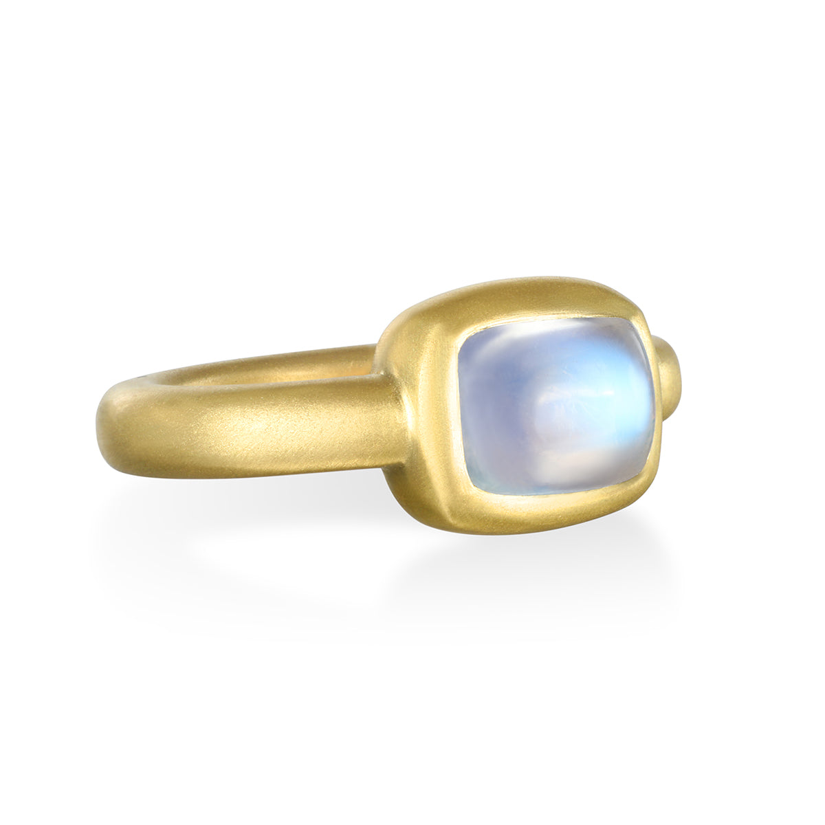 18 Karat Gold Blue Moonstone Cushion Bezel Ring