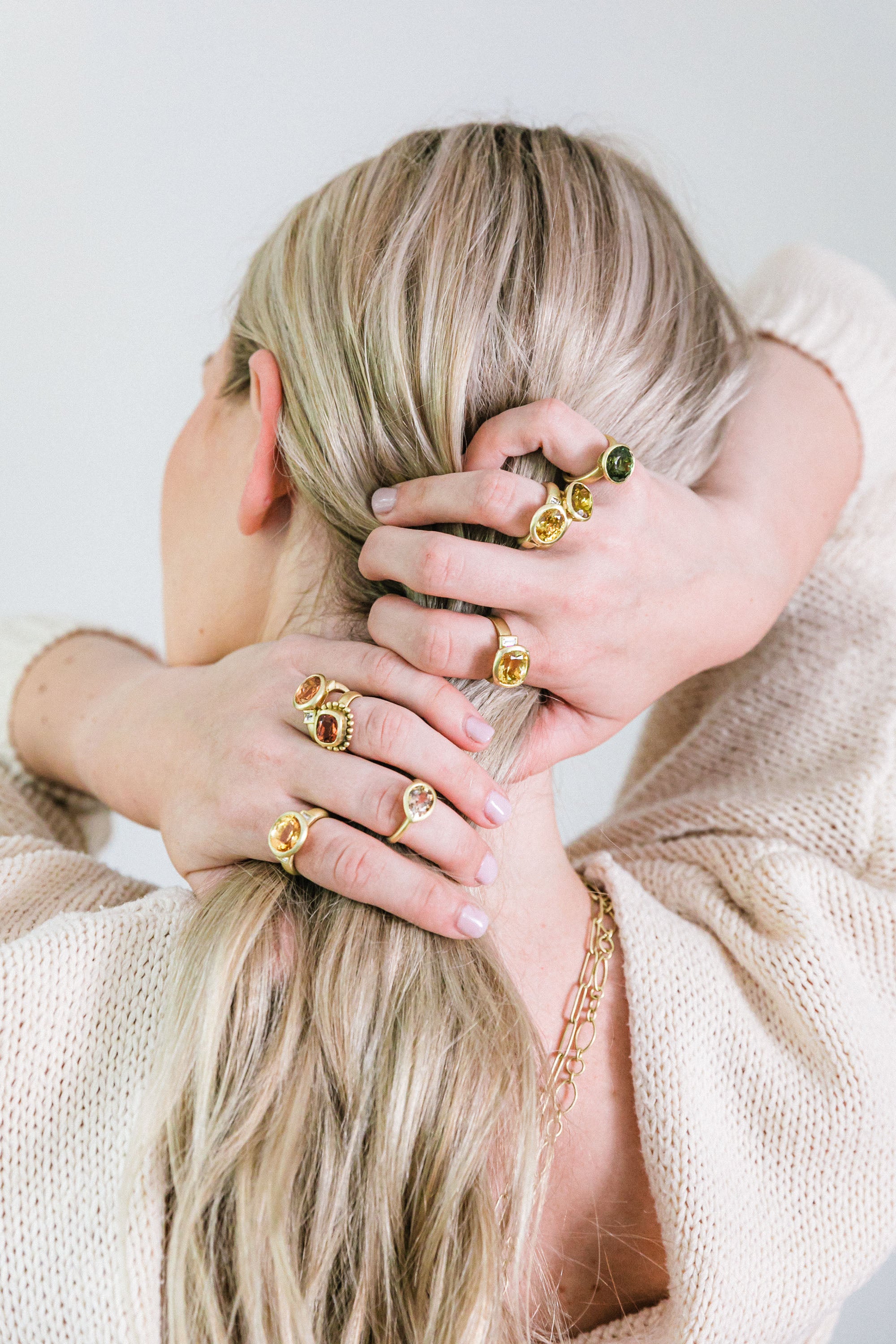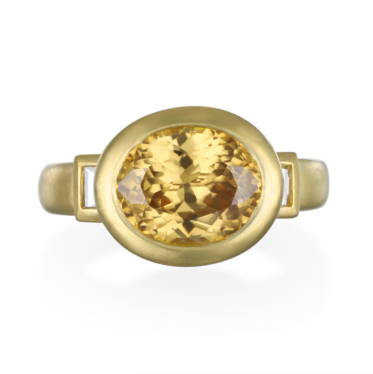 18k gold yellow Zircon three-stone ring with diamond baguettes