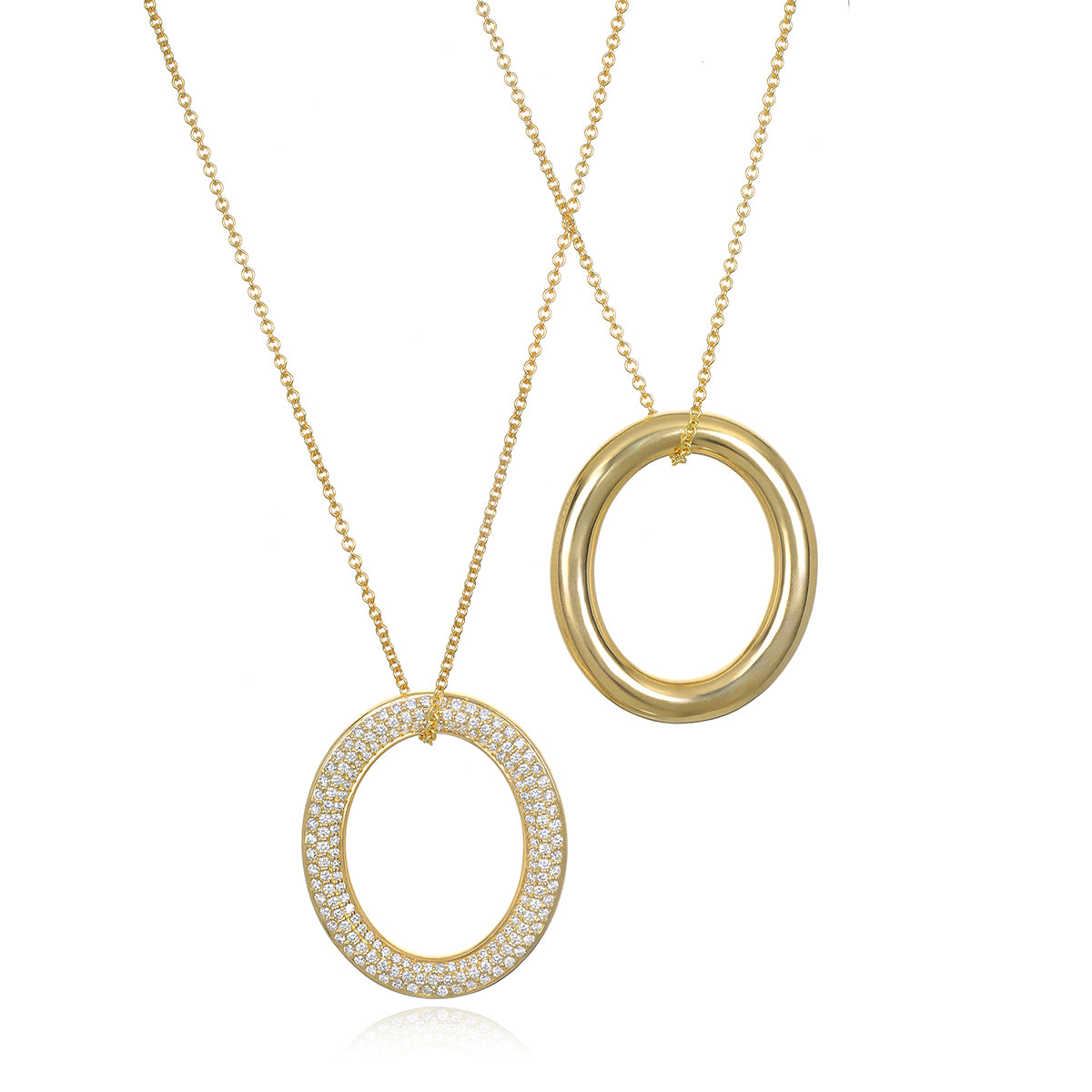 18k Gold Oval Micro Pave Diamond Reversible Pendant