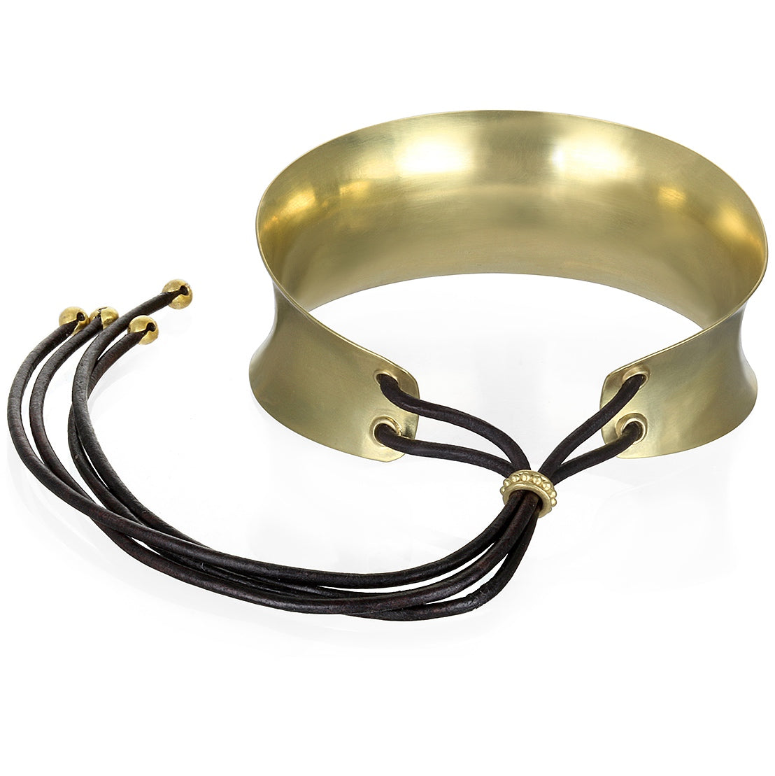 18k Gold Anticlastic Gold Cuff with Leather