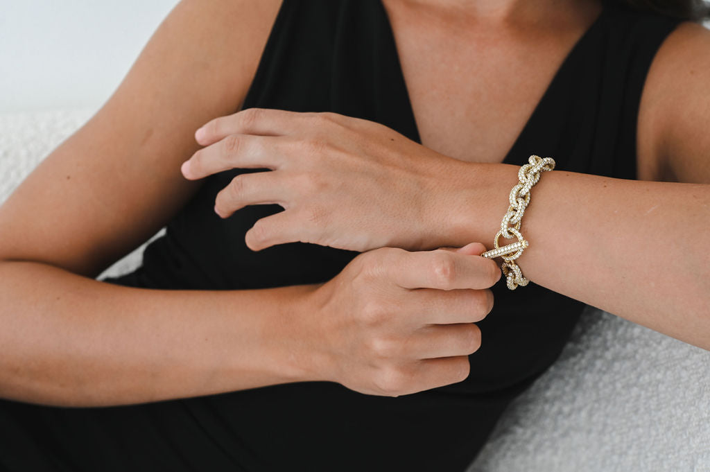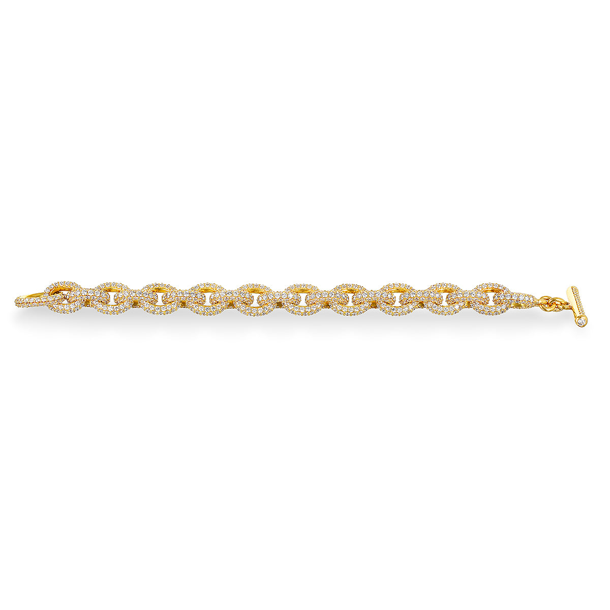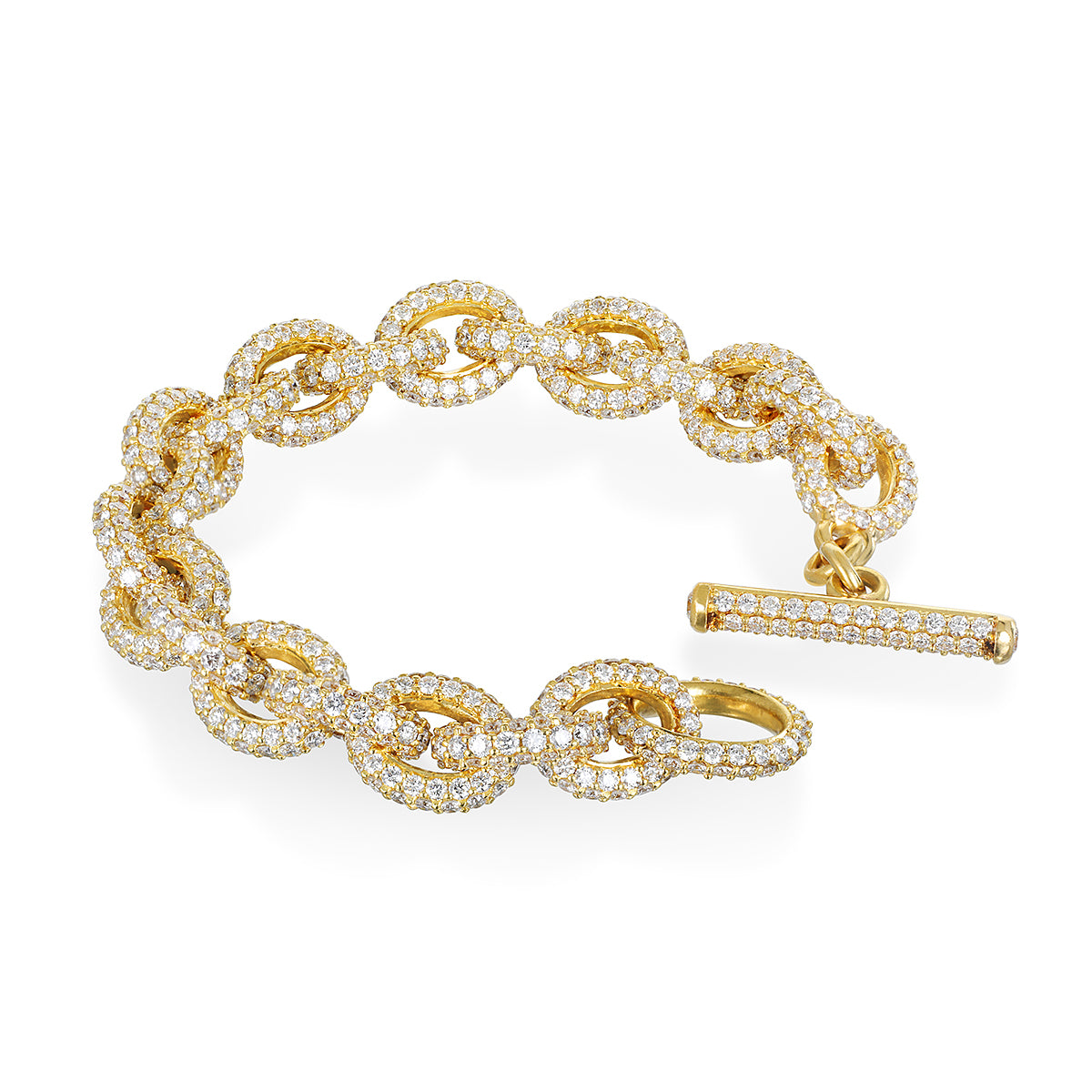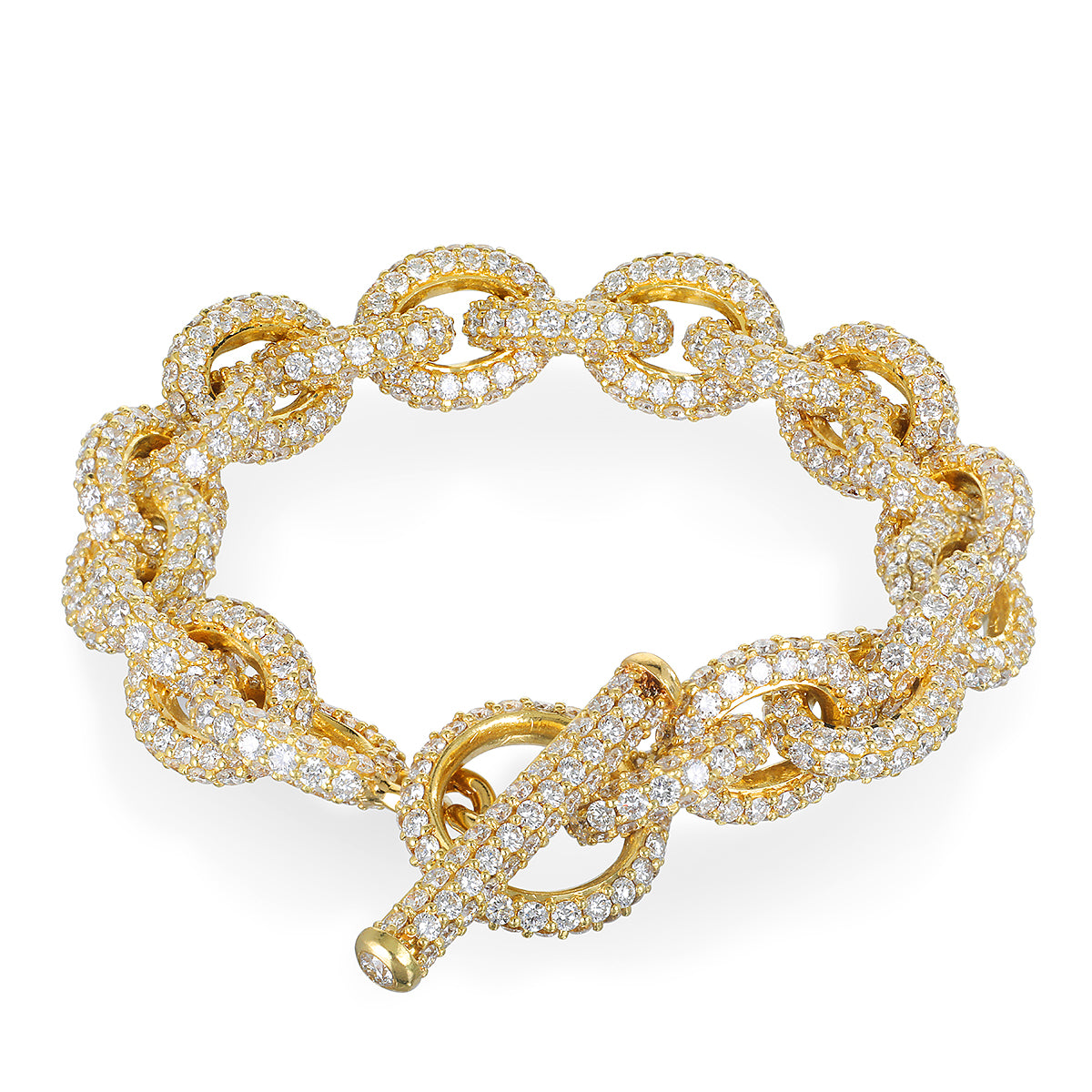 18k Gold Diamond Pave Link Bracelet with Toggle Closure