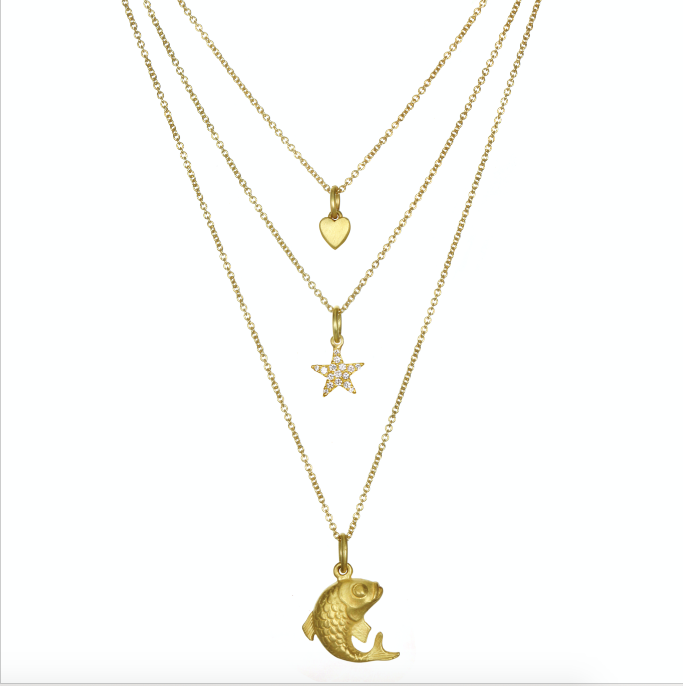 18k Solid Gold Diamond Koi Charm with Diamond Eyes