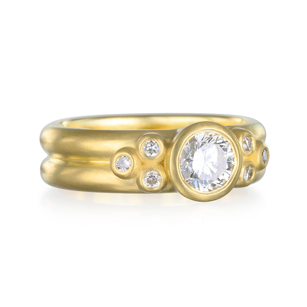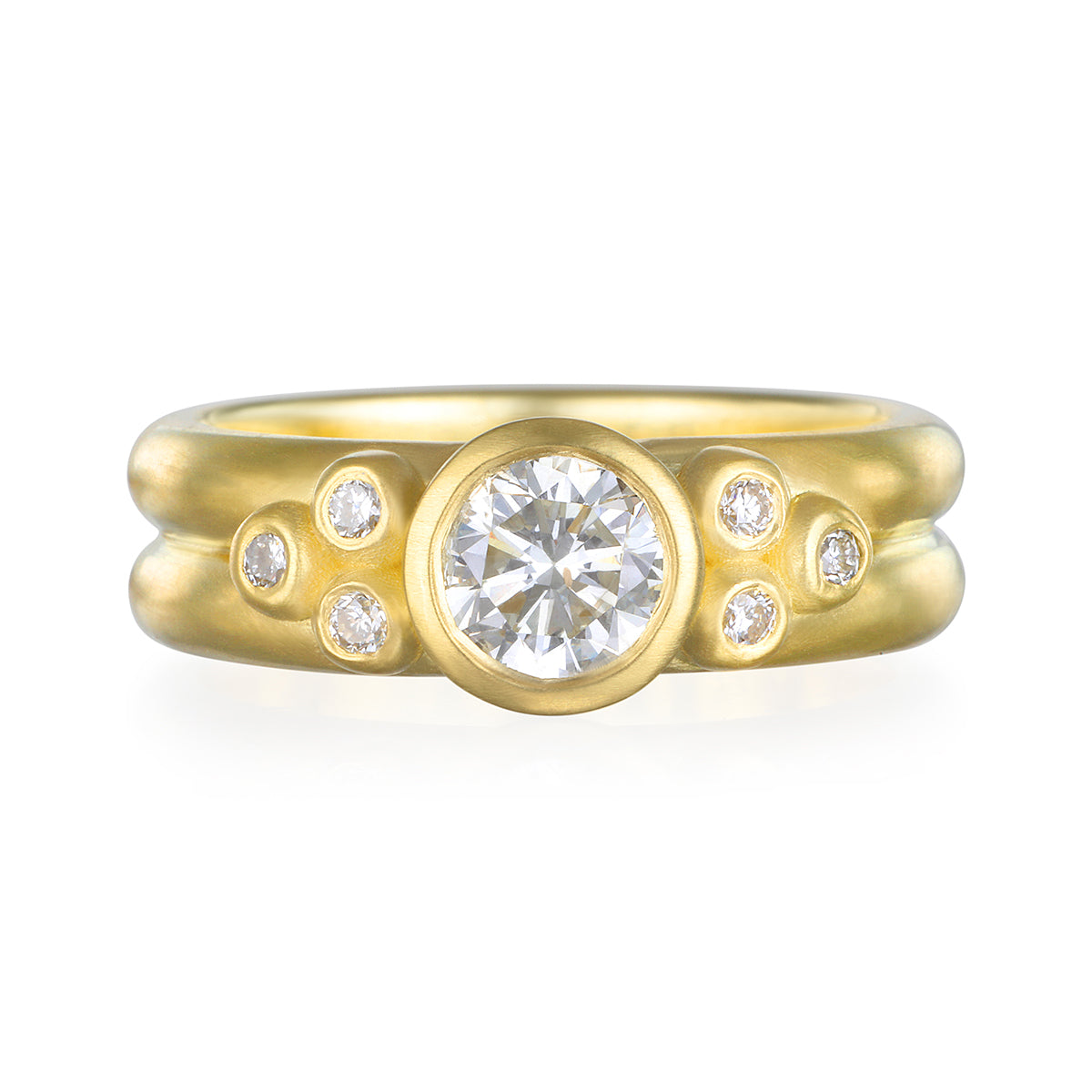 18 Karat Gold Diamond Bezel Ring with Diamond Granulation Beads