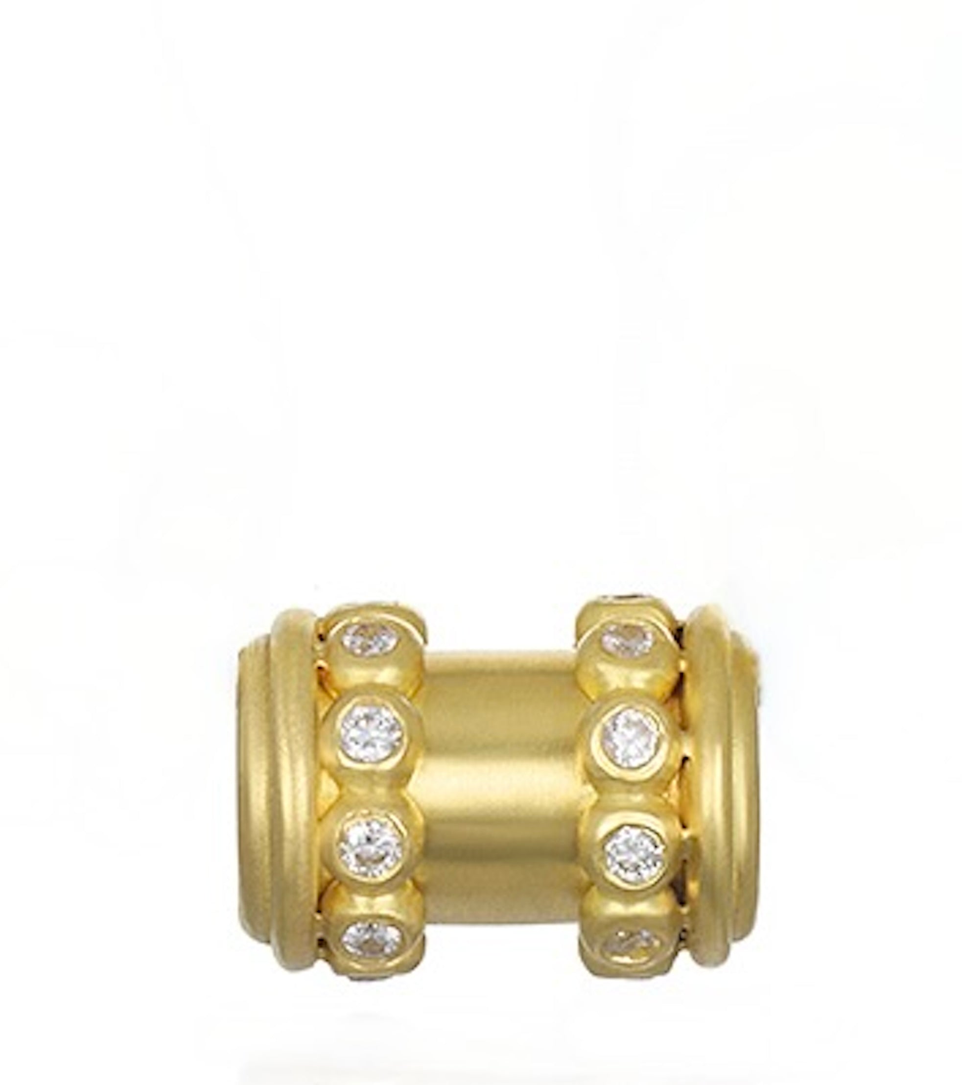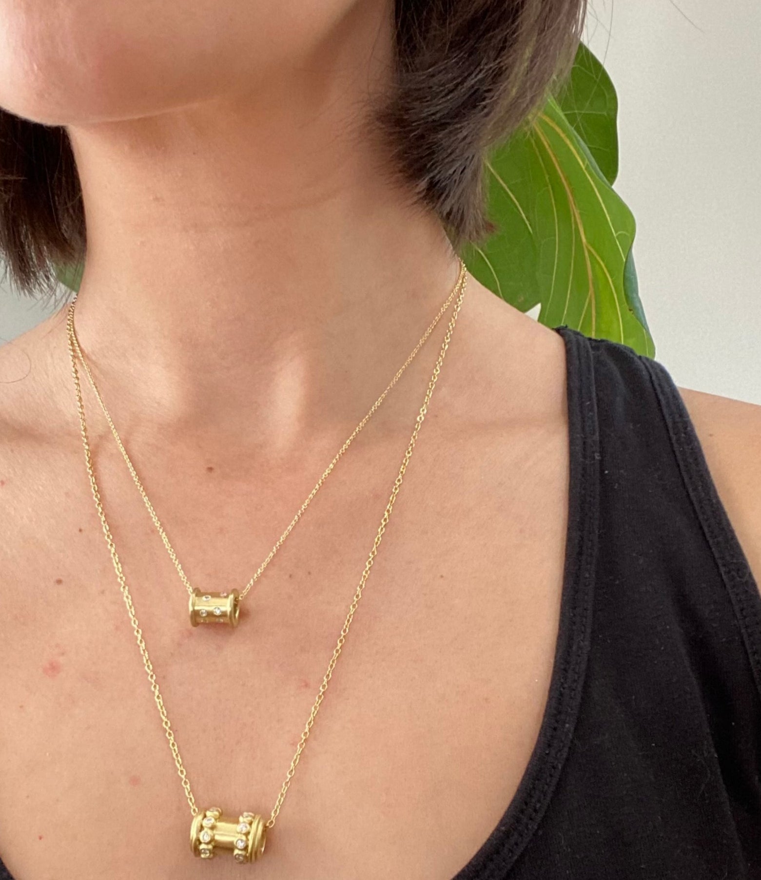 18 Karat Gold Diamond Granulation Spool Charm Necklace