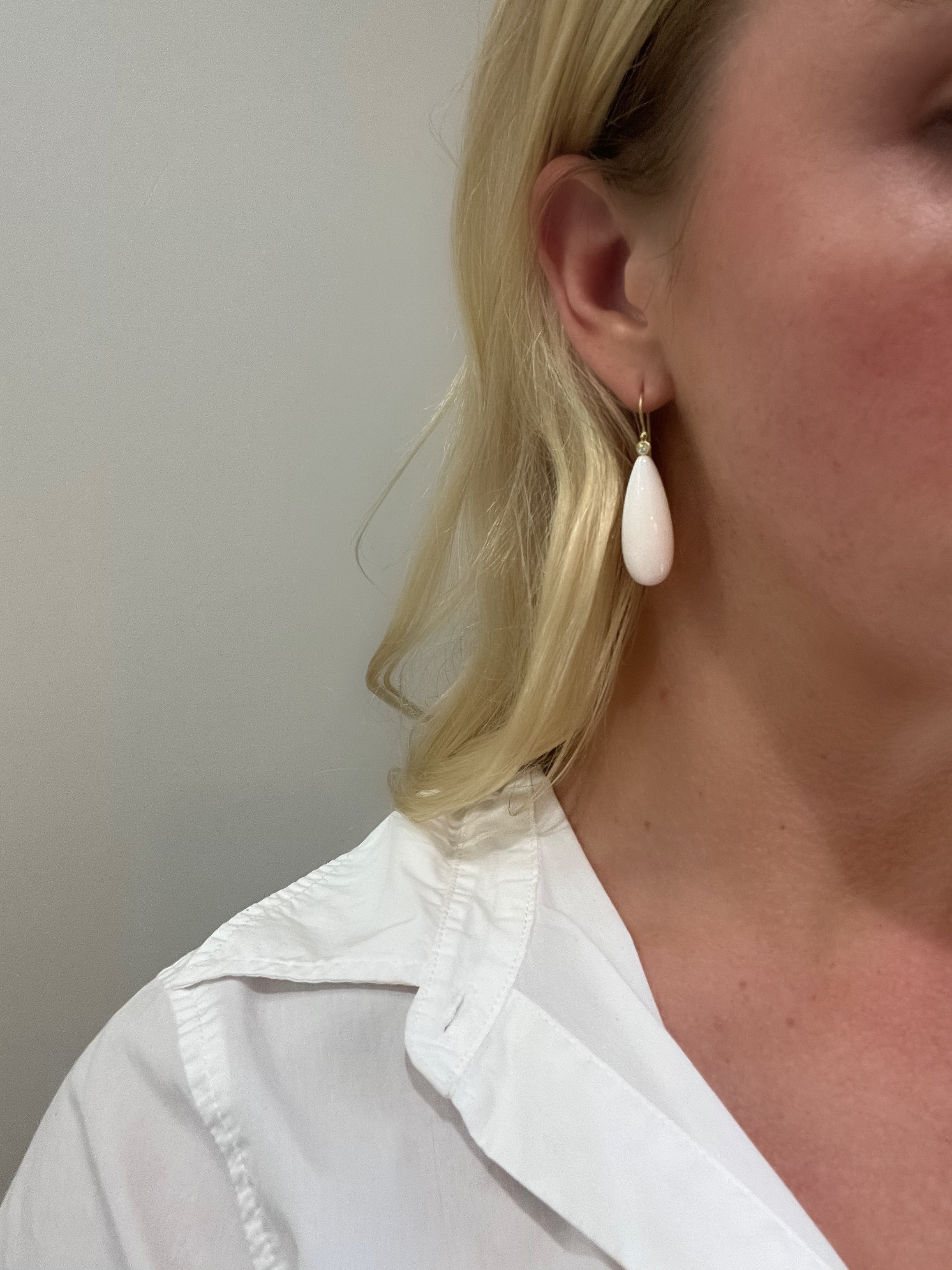 18k Gold Diamond White Coral Granulation Hinge Earrings