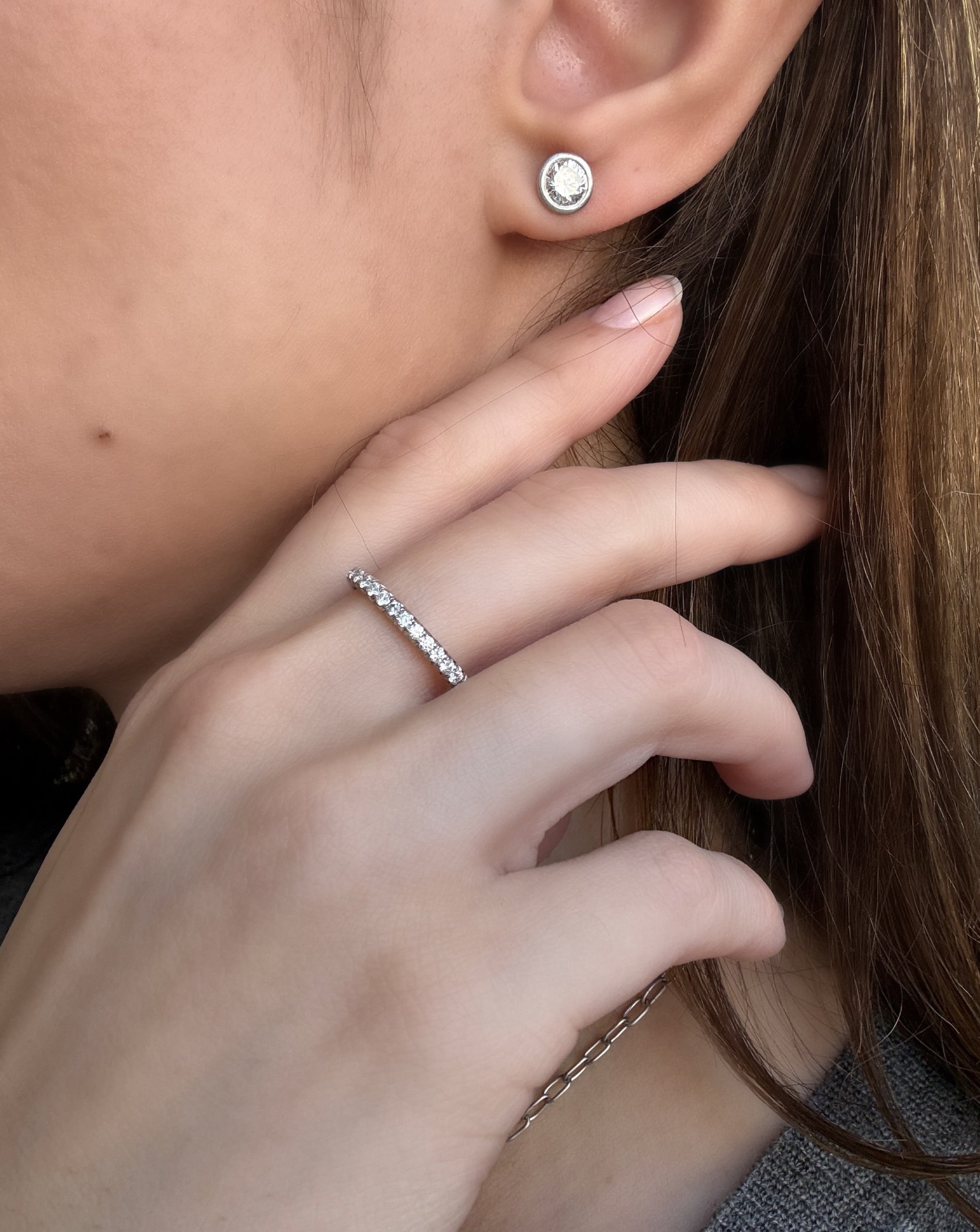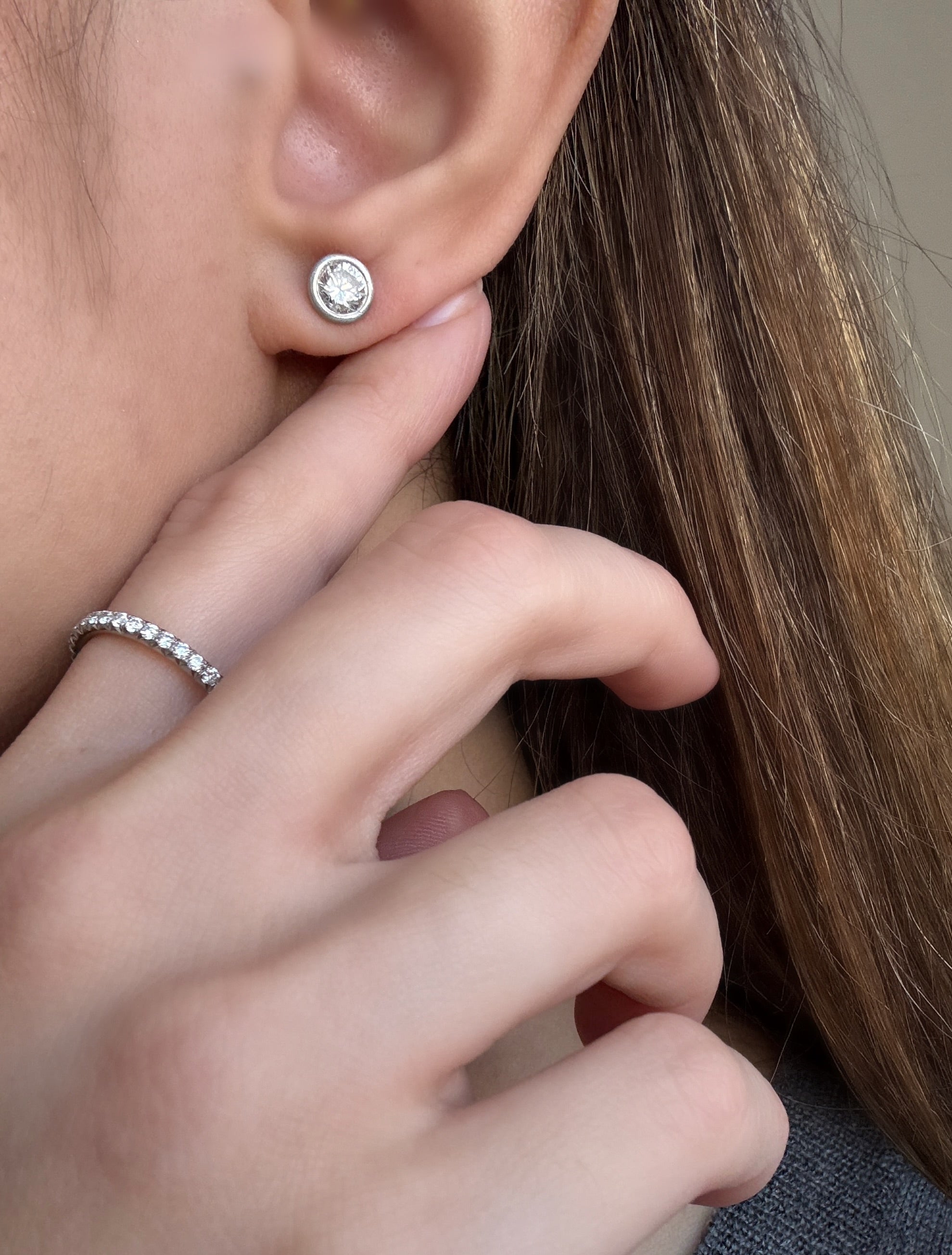 Platinum Diamond Martini Bezel Studs, Matte Finished