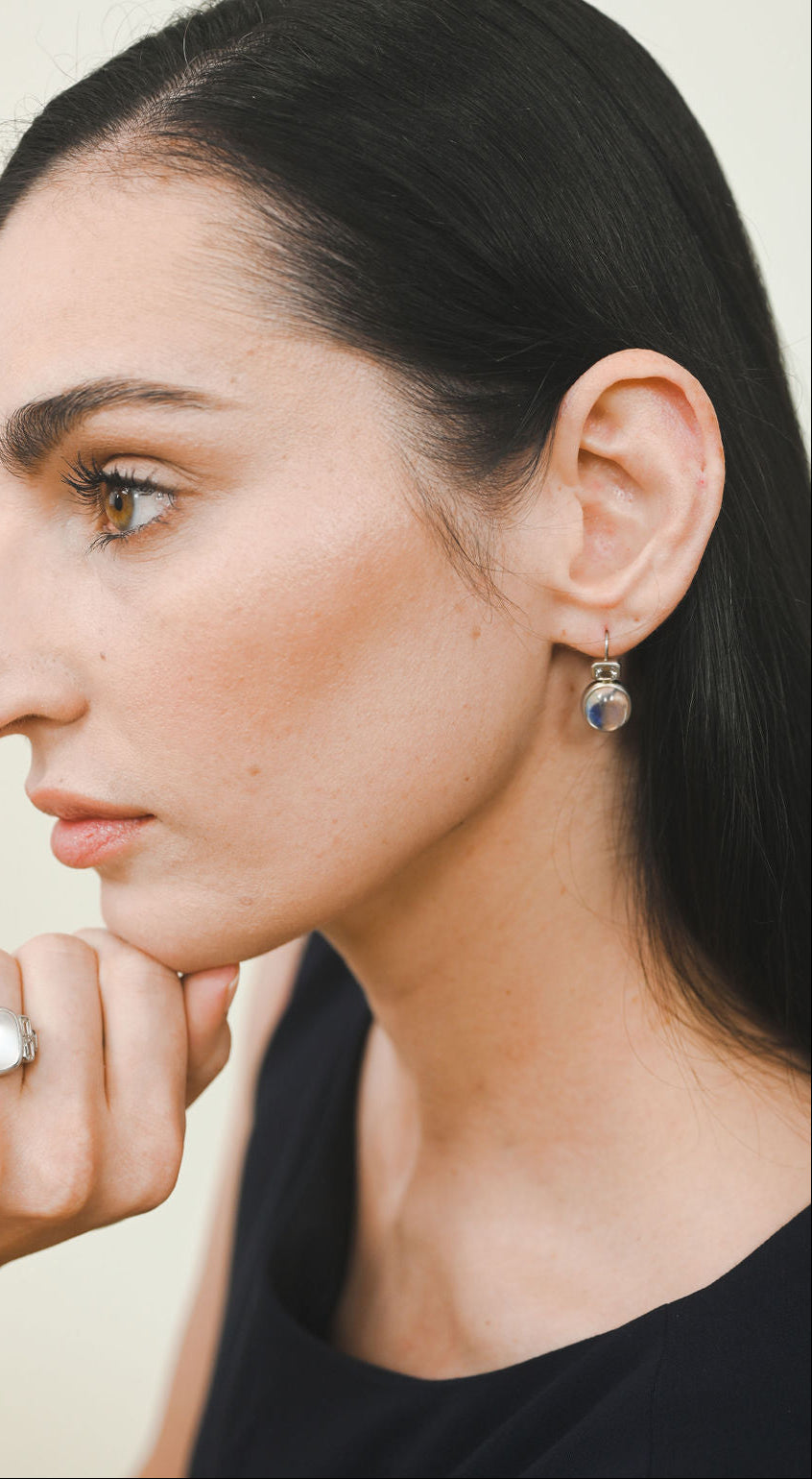 18k White Gold Ceylon Moonstone Diamond Earrings