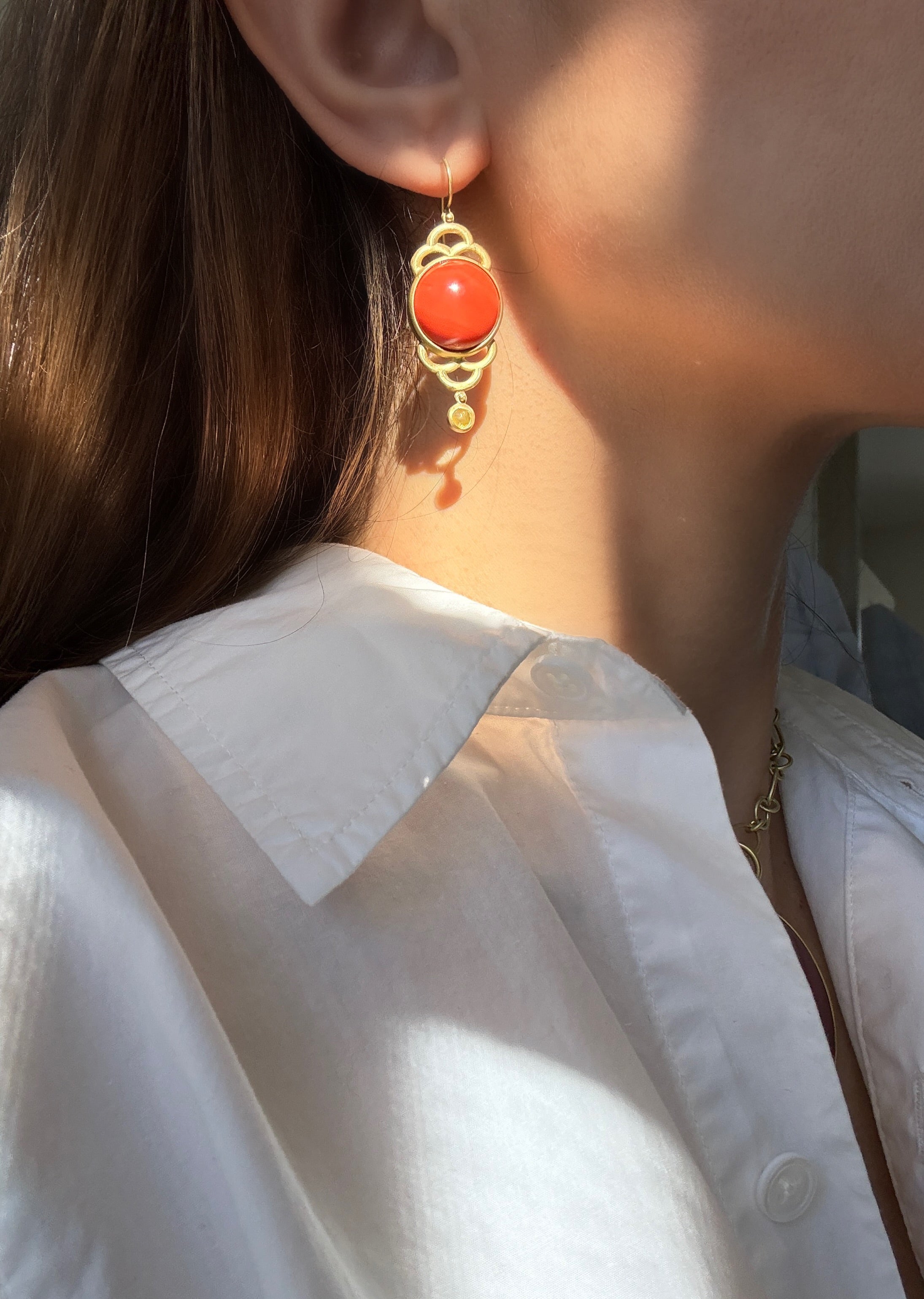 18k gold Coral scallop bezel earrings with milky Diamond accent