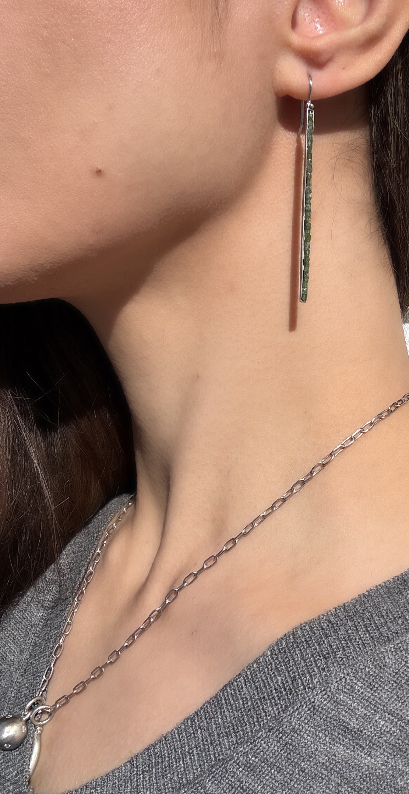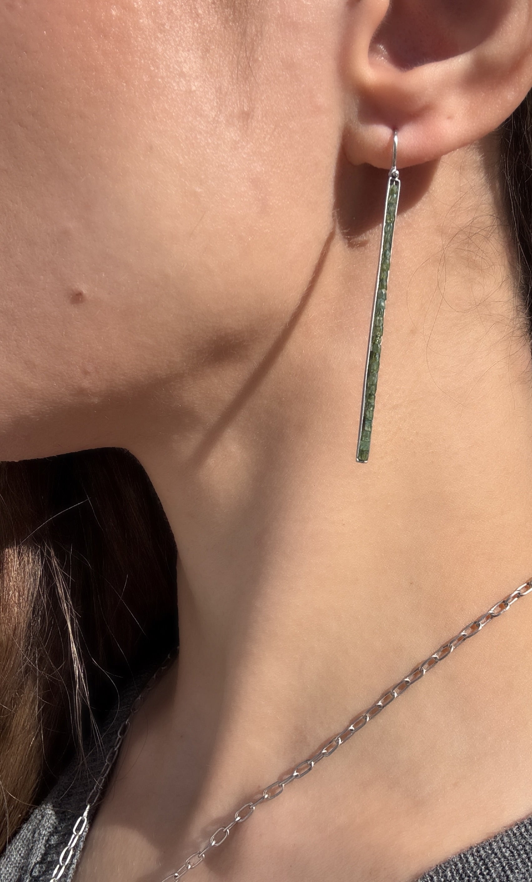 Platinum dark green Diamond bar earrings