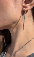 Platinum Dark Green Diamond Bar Earrings
