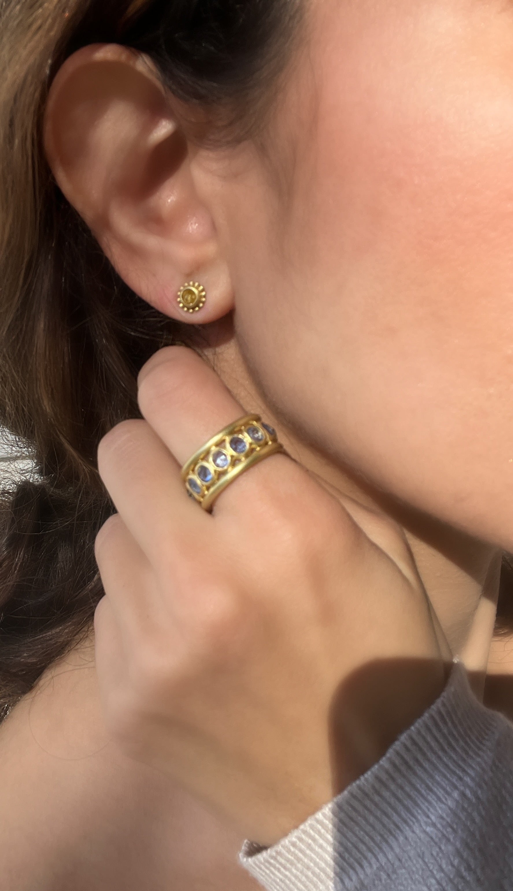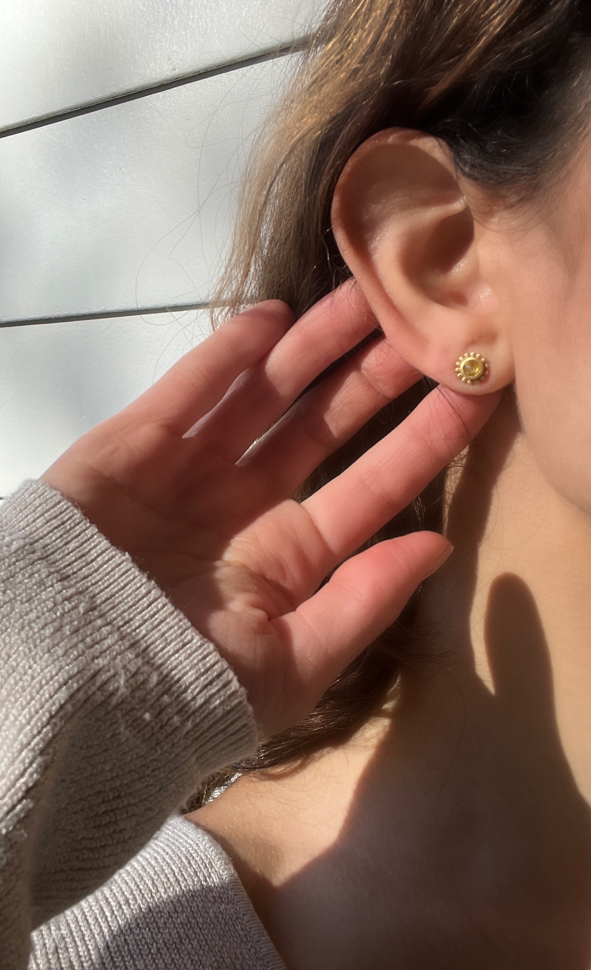 18k Gold Milky Diamond Stud Earrings with Granulation Border