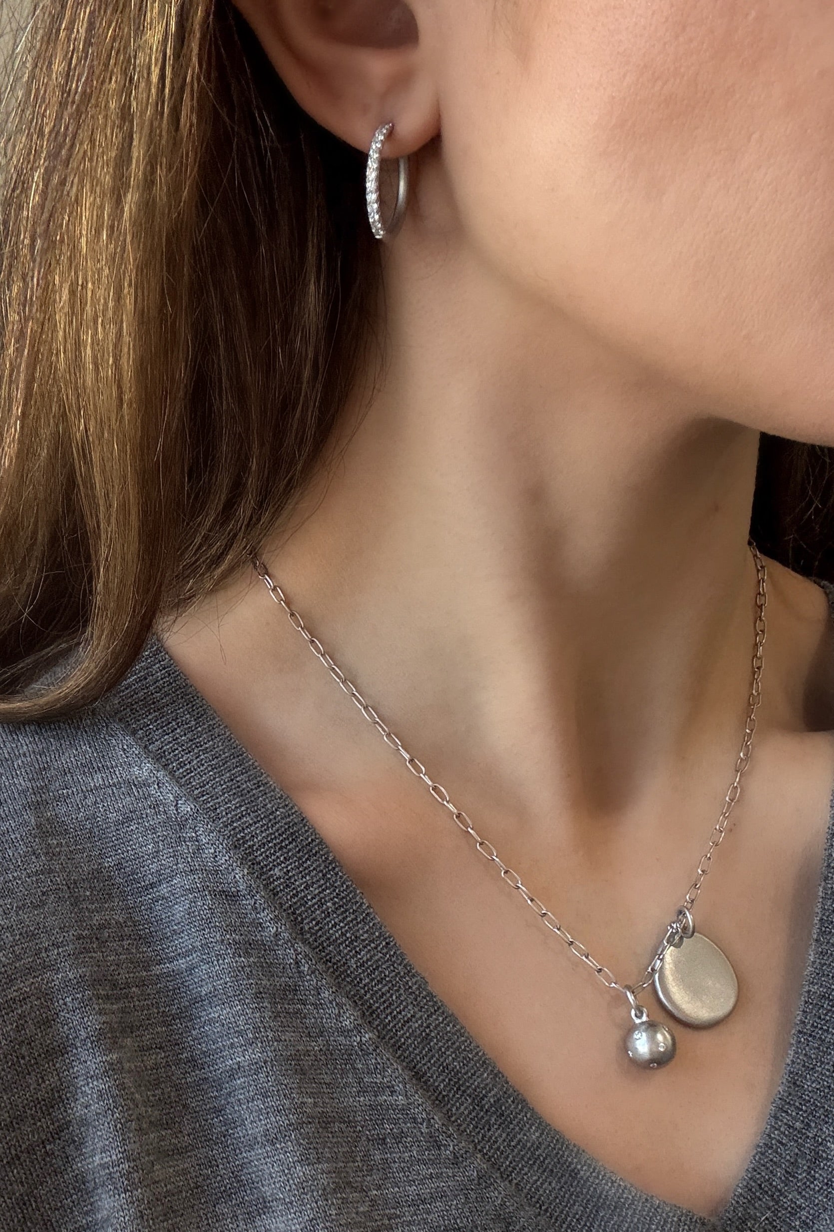 Platinum micro pave Diamond hinged hoops, matte finished
