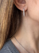 Platinum Micro Pave Diamond Hinged Hoops - Large