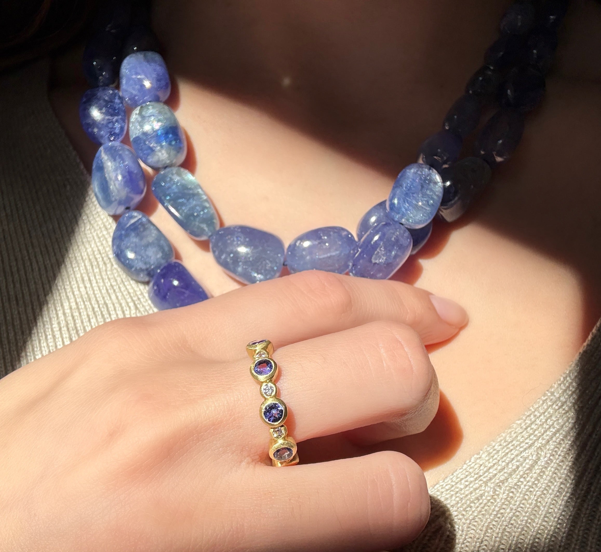 18 Karat Gold Tanzanite and Diamond Eternity Ring