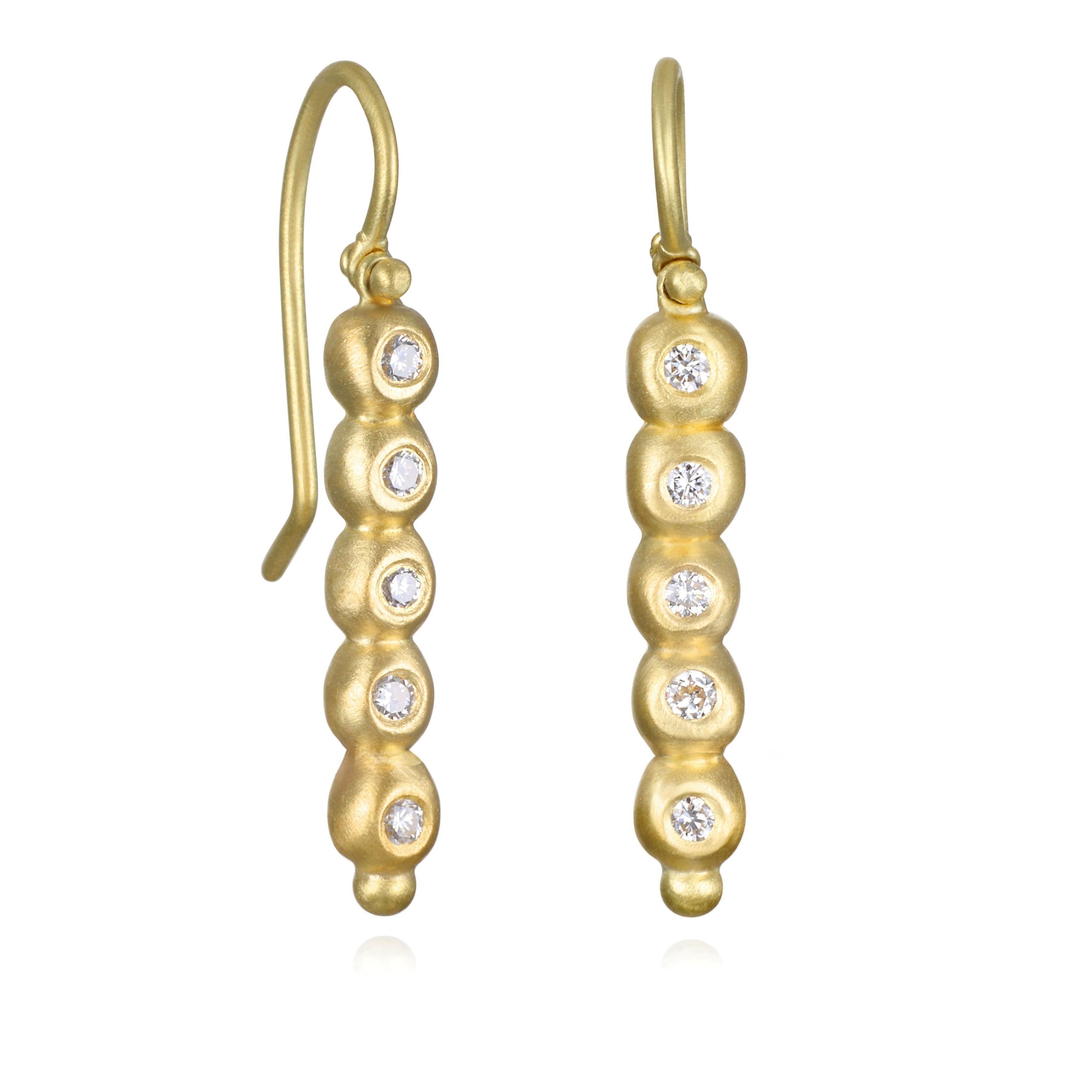 18 Karat Gold Diamond Granulation Bead Line Earrings