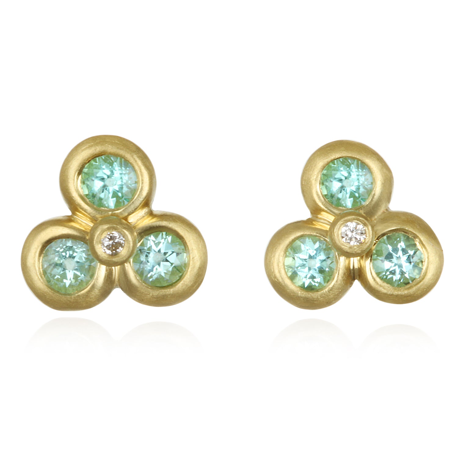 18k Gold Triple Paraiba Tourmaline Studs with Diamond