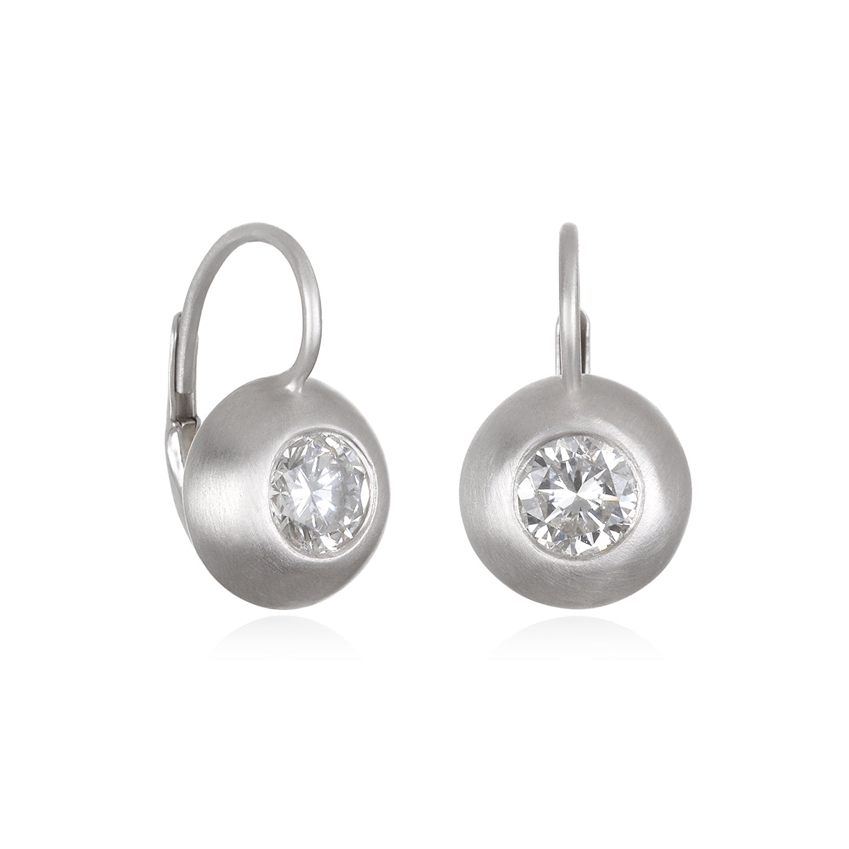 Round Brilliant Cut Diamonds Set in a Classic Dome Bezel with Leverbacks