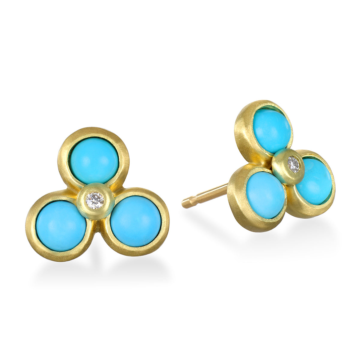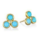 18k Gold Triple Turquoise and Diamond Stud Earrings