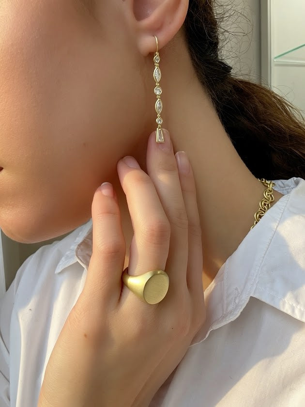 18 Karat Gold Fancy Shaped Diamond Line Earrings