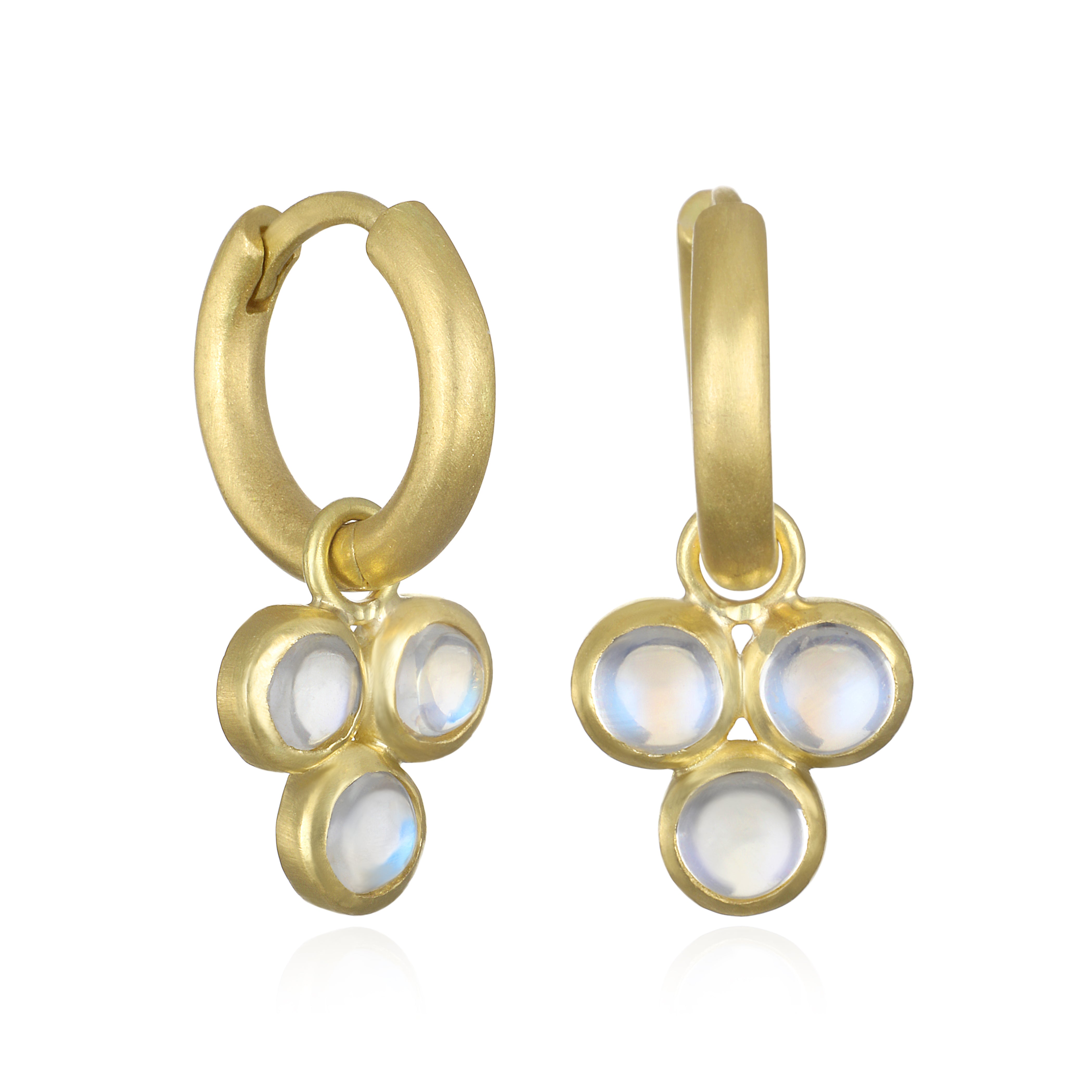 18 Karat Gold Triple Blue Ceylon Moonstone Drops - hoops sold separately