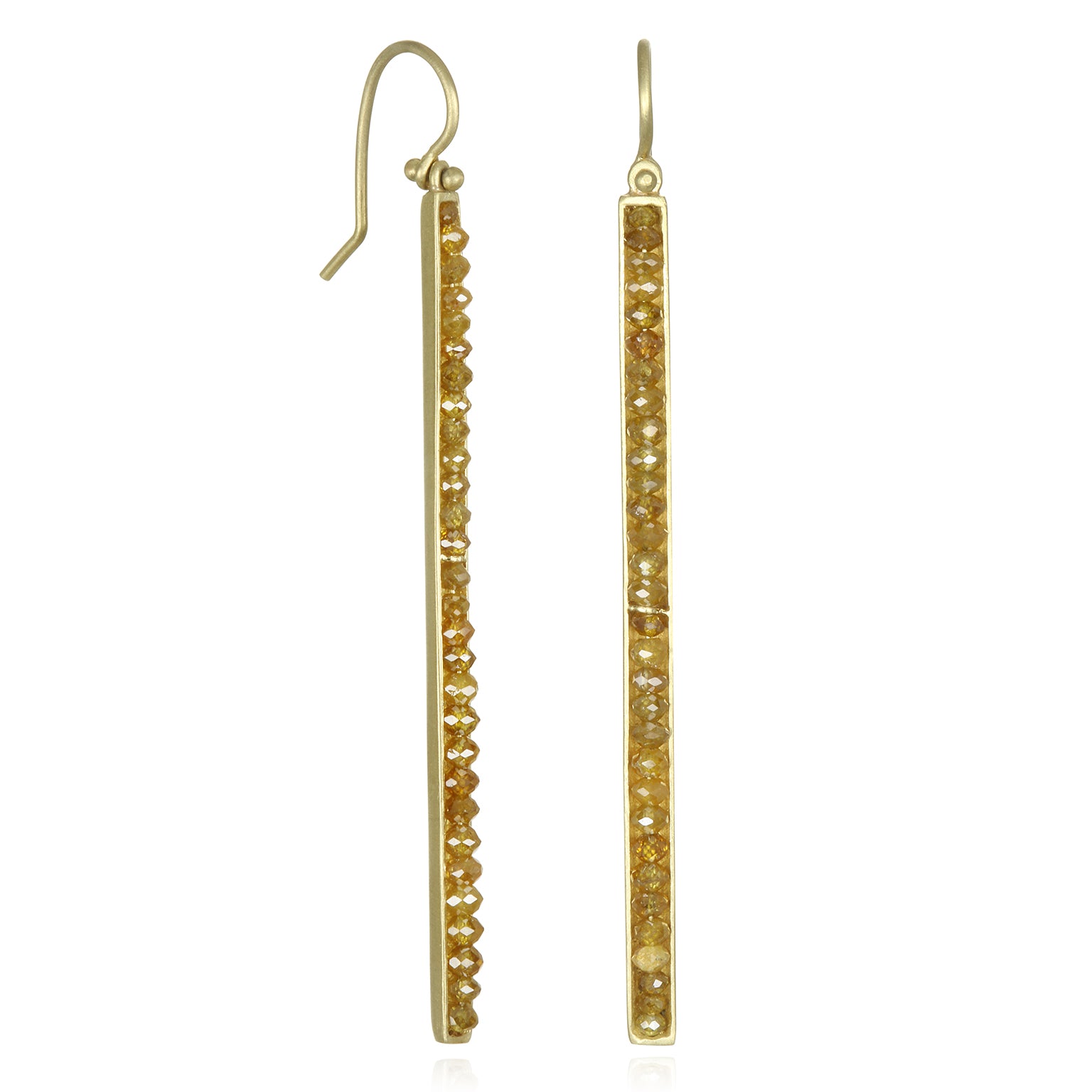 18k Gold Milky Diamond Bar Earrings with Hinged French Earrwires