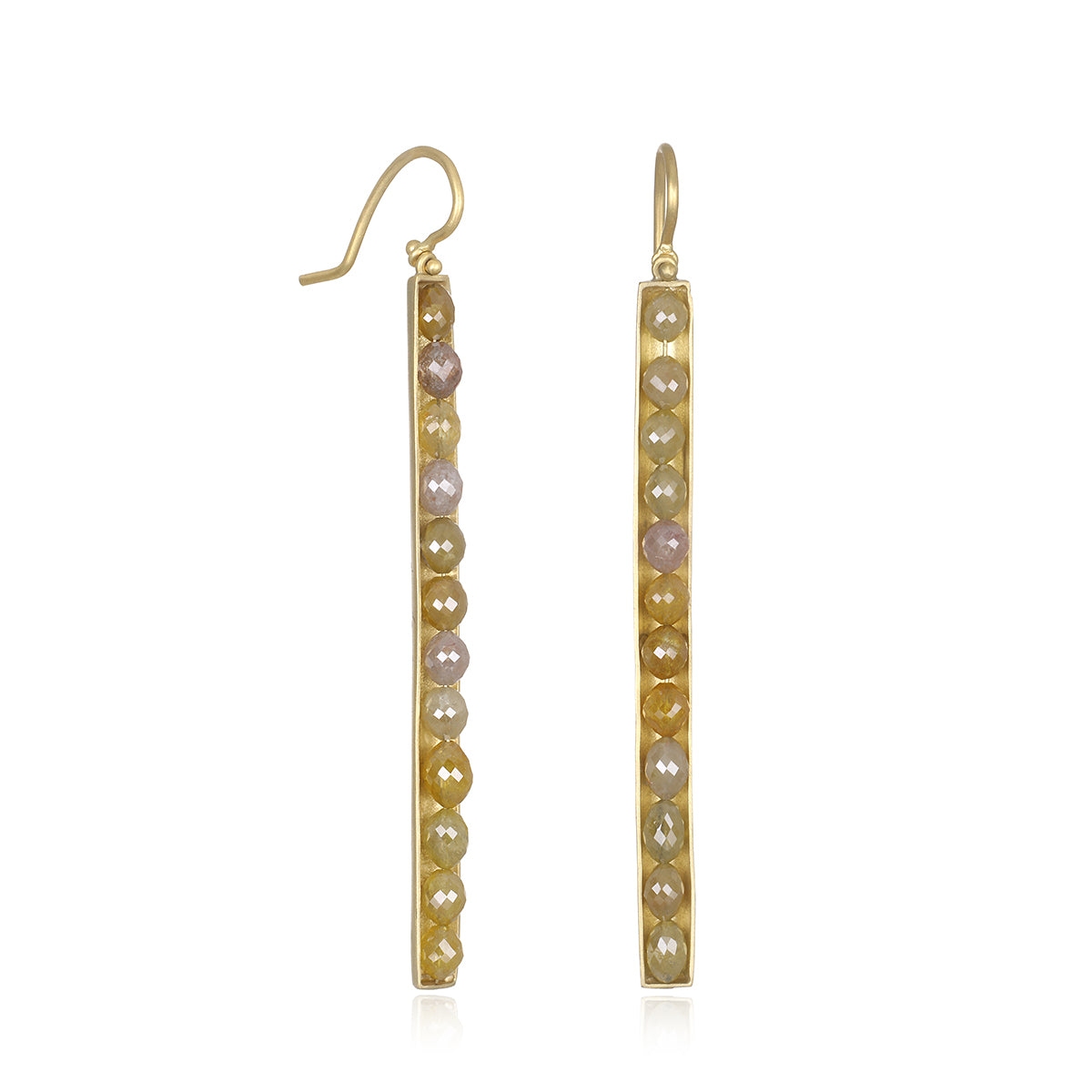 18 Karat Gold Yellow Milky Diamond Bar Earrings
