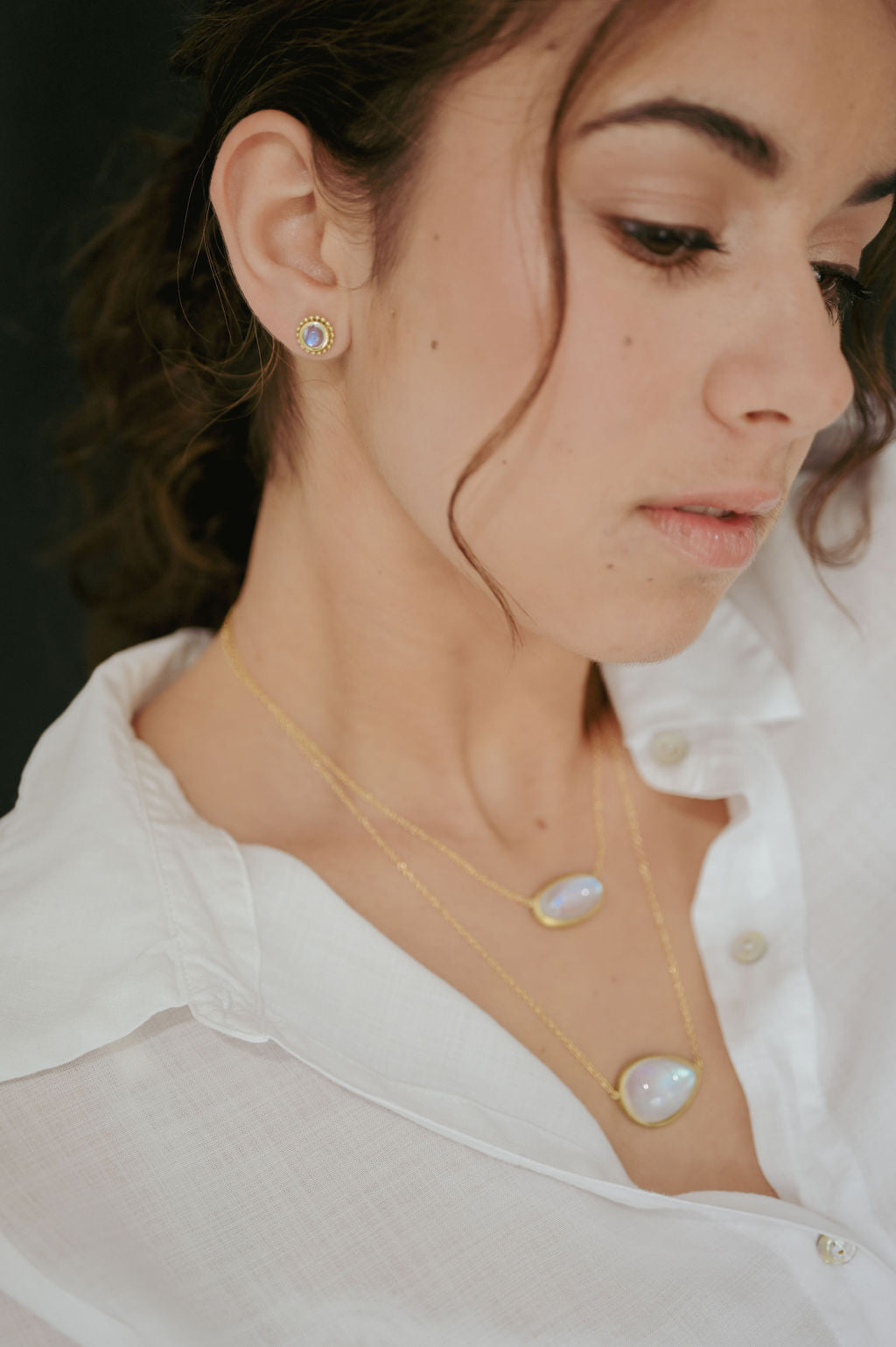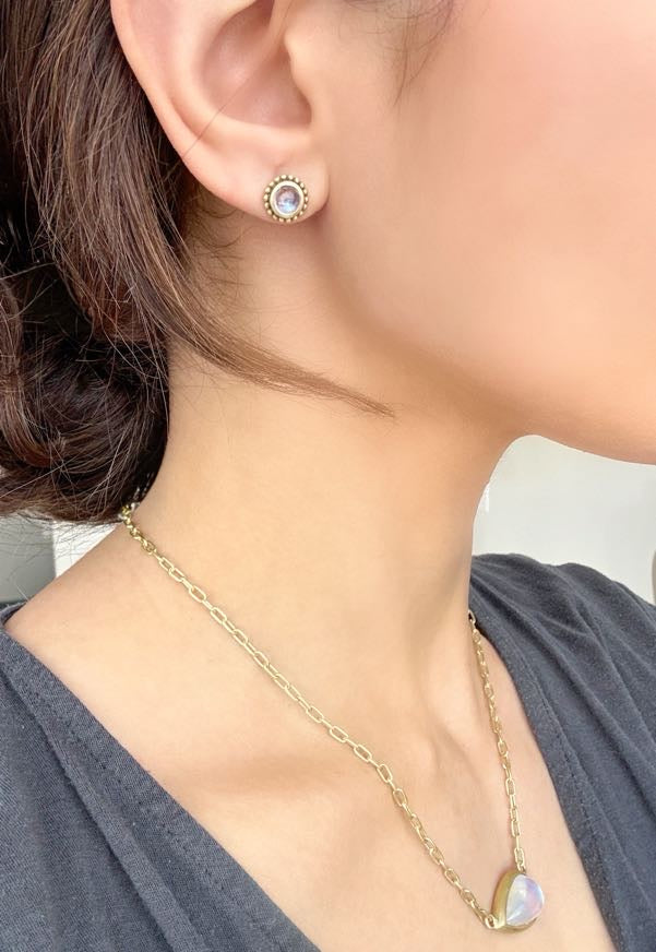 18k Gold Baby Burma Moonstone Studs Granulation Details