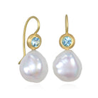 18k Gold White Freshwater Baroque Pearl and Aquamarine Drop Earrings
