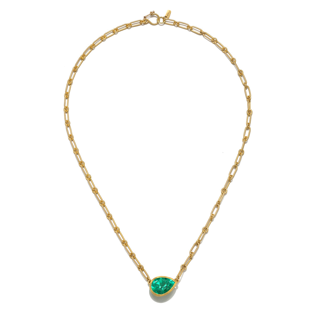22 Karat Gold Pear Shaped Colombian Emerald Necklace